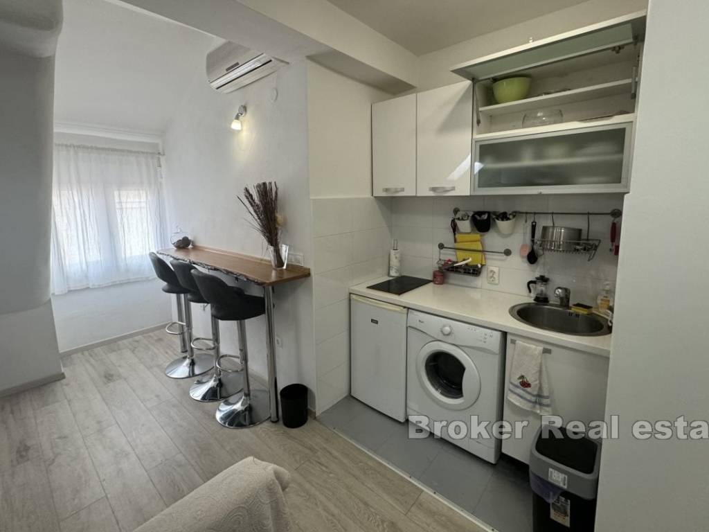 Una proprietà unica nel cuore della città di Spalato, situata vicino alla Riva. Si compone di due unità che hanno unottima occupazione durante la stagione turistica. È una proprietà ideale come investimento e rapido ritorno di denaro. Si trova al quarto piano di un palazzo residenziale rinascimentale. La metratura totale dellappartamento è di 73 mq. È diviso in due appartamenti, il primo di 33 mq e il secondo di 40 mq, entrambi hanno una camera da letto con soggiorno separato, cucina e bagno. Lorientamento dellappartamento garantisce molta luce naturale. Si trova vicino a tutti i servizi necessari per la vita, ristoranti, bar, mercati. Riva e Matejuška si trovano a 10 metri dagli appartamenti stessi, il che lo rende uno degli investimenti più desiderabili considerando la sua posizione.