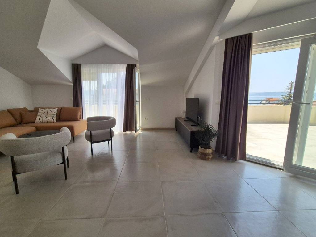 Appartamento attico, con vista mare, in vendita, situato al secondo piano di un piccolo edificio residenziale e commerciale a Kastela, in una posizione tranquilla e confortevole, vicino alla spiaggia e tutti i servizi necessari.