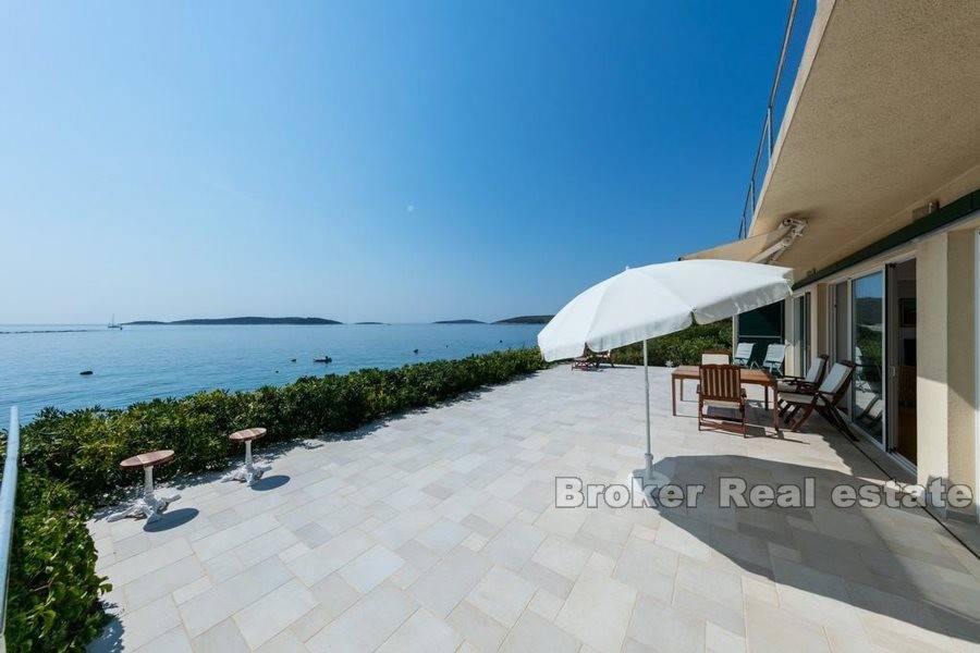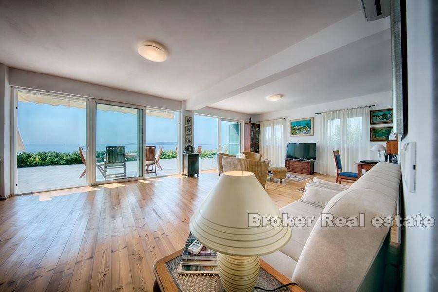 Gli appartamenti sono progettati in modo tale che al piano terra si trova un appartamento più grande di 150 m2, composto da soggiorno, cucina con sala da pranzo, due camere da letto, due bagni e una terrazza con una splendida vista sul mare aperto.