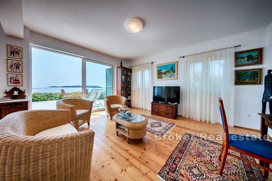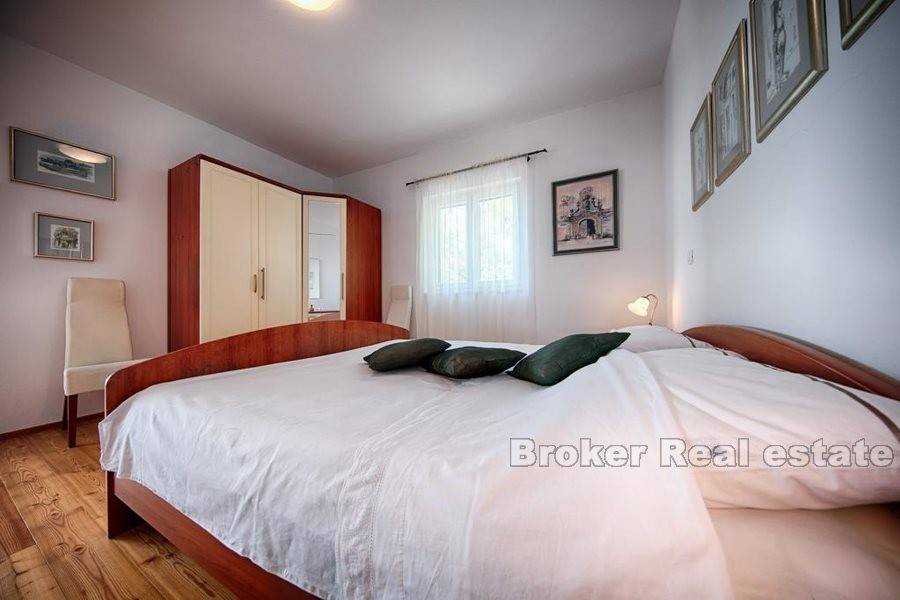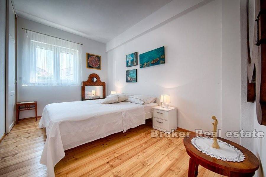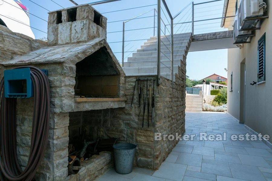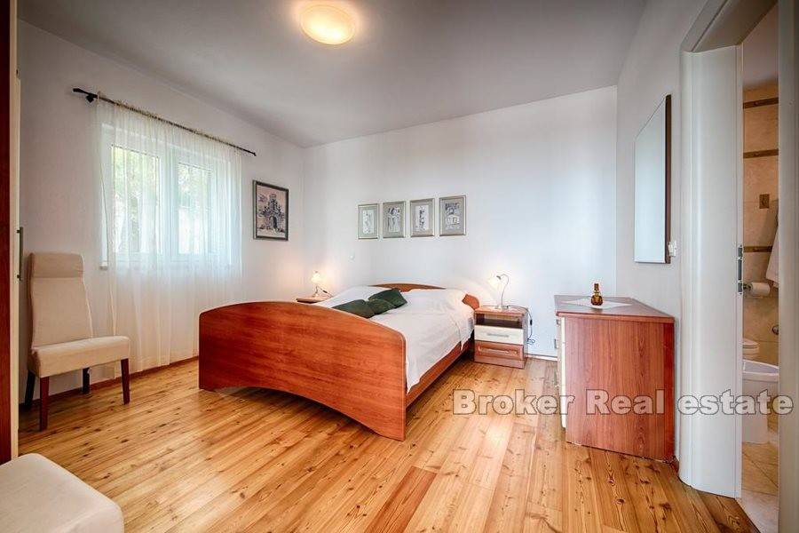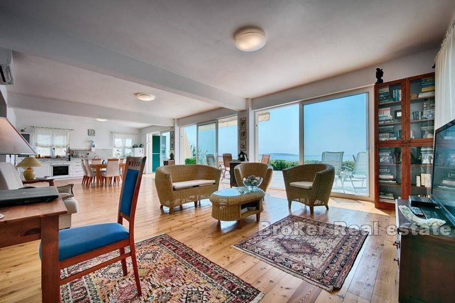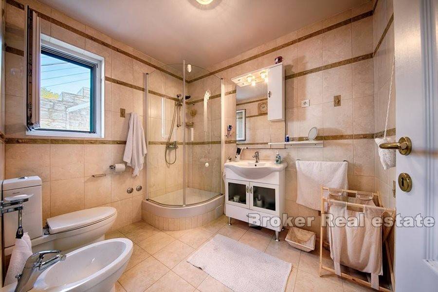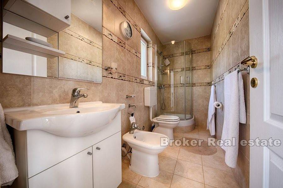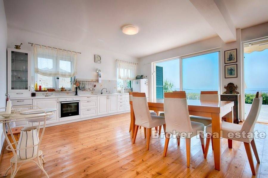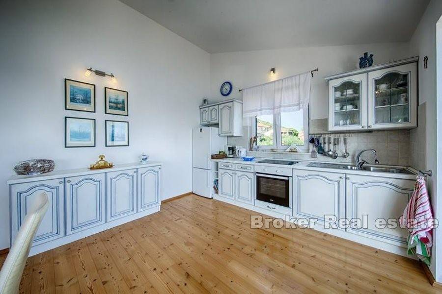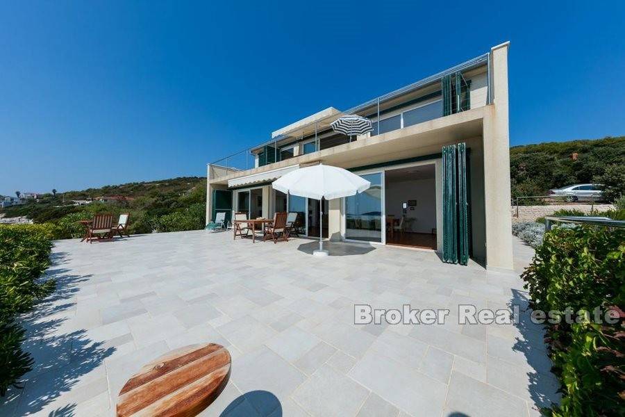 La casa con superficie totale di 250 m2, di recente costruzione, si estende su due piani, è composta da due spaziosi appartamenti con due camere da letto con vista sul mare aperto.