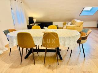 Nalazi na 2. katu (visoko potkrovlje) u manjoj stambenoj zgradi u nizu (tri stambene jedinice) koja se nalazi na iznimno mirnoj lokaciji odličnoj za miran obiteljski život.