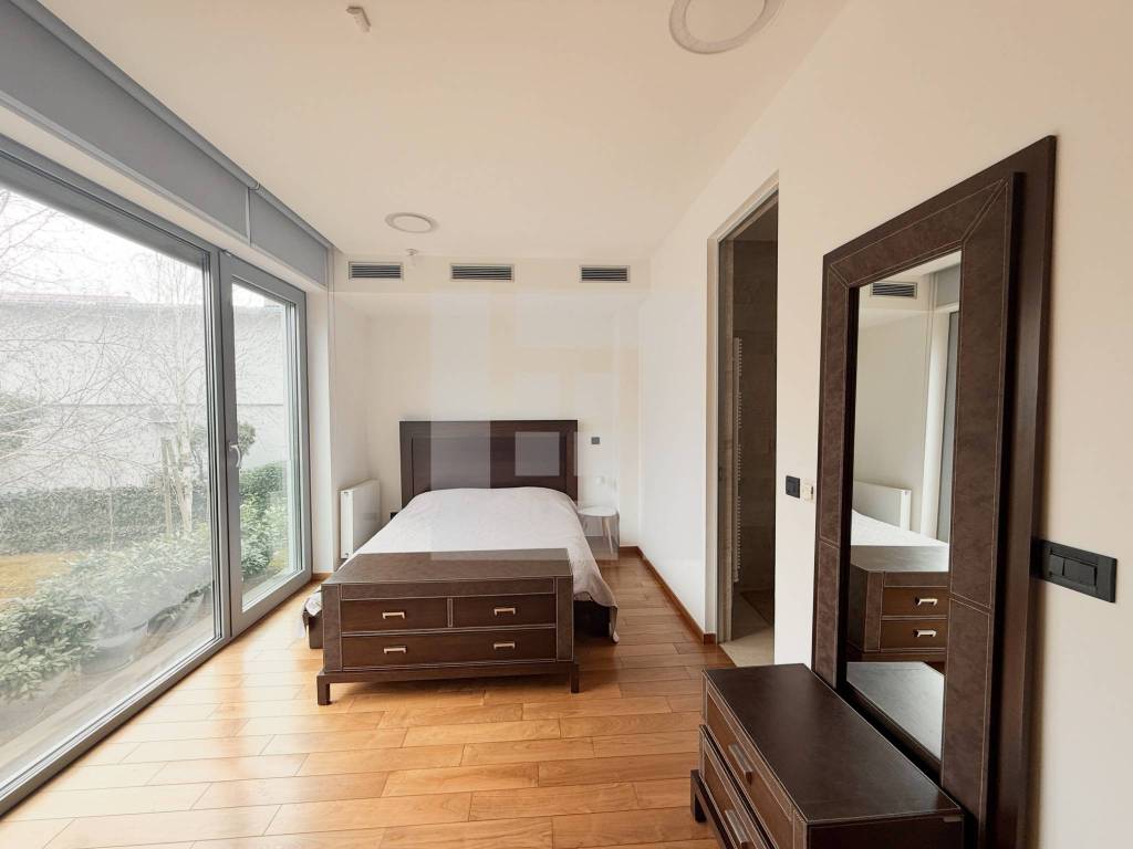 Additional exclusivity is provided by a walk-in wardrobe and a generously sized bathroom with a modern walk-in shower, designed with an emphasis on elegance and premium finishes.
