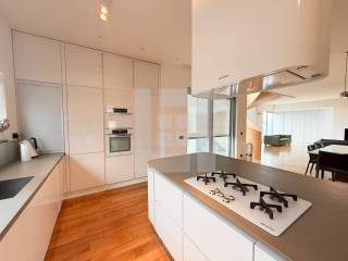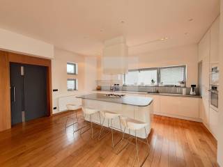 The following floor is conceived as a luxurious open-plan space intended for cooking, dining, and relaxation. Flooded with natural light, it offers beautiful open views.