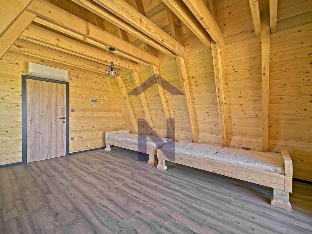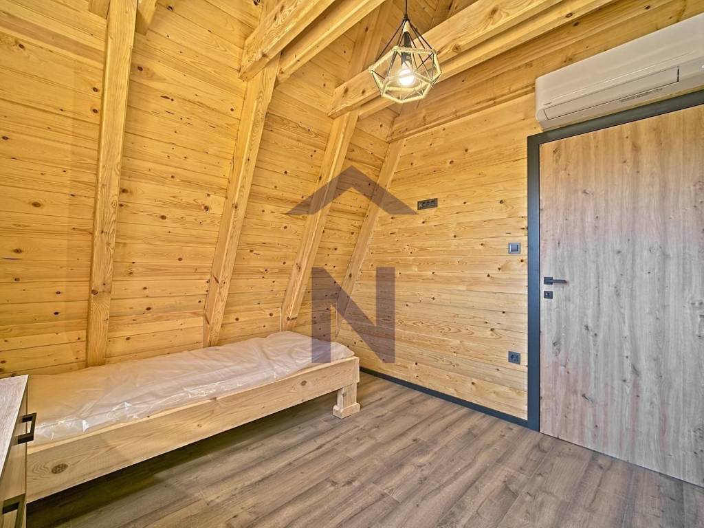 Opremljena je kaminom i podnim grijanjem donje etaže, i postavljena su4 klima uređaja.