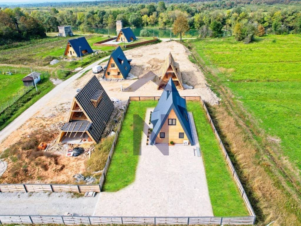 We are selling a modern, fully furnished holiday house located in a peaceful area surrounded by nature, near the Kupa River. The property offers a view of the Kupa River and a nearby swimming area.