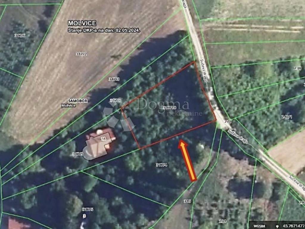 Prodaje se atraktivno građevinsko zemljište površine 936 m u mirnom i zelenom okruženju naselja Molvice, nadomak Samobora.