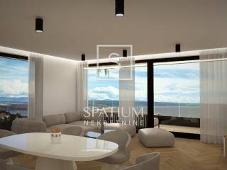 In fondo all'ingresso si trova il soggiorno principale di 42 metri quadrati, che suddivide la funzione di cucina, sala da pranzo e salotto con accesso alla terrazza da cui si gode di una vista sul mare, raggiungibile in pochi minuti a piedi. L'appartamento sarà dotato di porte blindate, pompa di calore, riscaldamento a pavimento e aria condizionata, infissi in alluminio, pavimenti e rivestimenti di qualità. L'appartamento dispone di due posti auto. Un ascensore conduce direttamente dal garage sotterraneo all'appartamento.