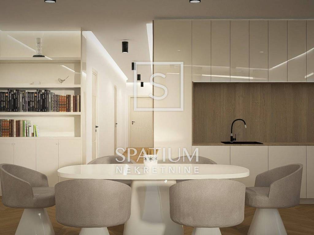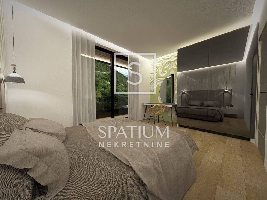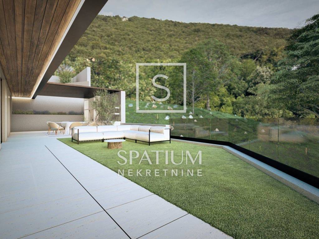 IČIĆI, proponiamo un appartamento con due camere da letto al piano terra rialzato di un nuovo edificio con piscina condominiale e giardino privato. Entrando nell'appartamento, si gode di una vista diretta attraverso le ampie vetrate del soggiorno, che crea una piacevole prima impressione. Su un lato si trovano spazio per un armadio a muro, un bagno e un locale tecnico. Sul lato opposto si trovano due spaziose camere da letto, separate da un secondo bagno. Le camere hanno una superficie di 13-15 metri quadrati, garantendo un maggiore comfort durante il soggiorno. Le camere godono di vista sul giardino e accesso diretto alla terrazza.