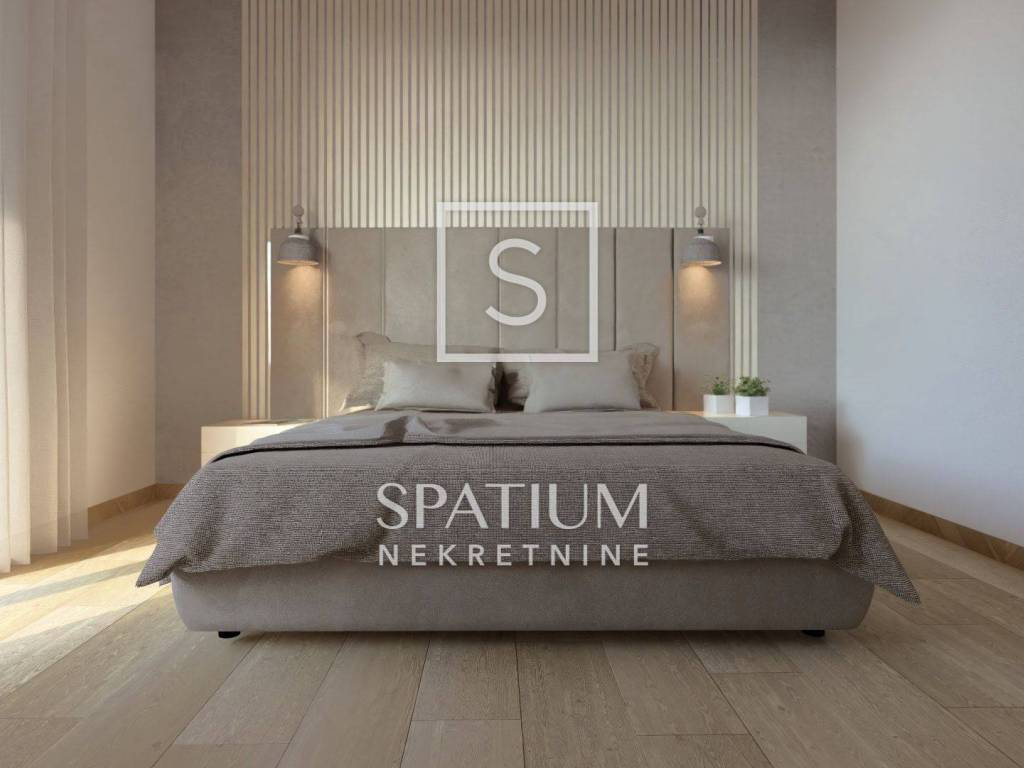 IČIĆI, proponiamo un appartamento con due camere da letto al primo piano di un nuovo edificio con piscina condominiale. Entrando nell'appartamento, si gode di una vista diretta attraverso le ampie vetrate del soggiorno, che crea una piacevole prima impressione. Su un lato si trovano uno spazio per un armadio a muro, un bagno e un locale tecnico. Sul lato opposto si trovano due spaziose camere da letto, separate da un secondo bagno. Le camere da letto hanno una superficie di 15 metri quadrati, garantendo un maggiore comfort. Le camere godono di vista e accesso diretto al balcone.
