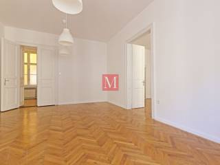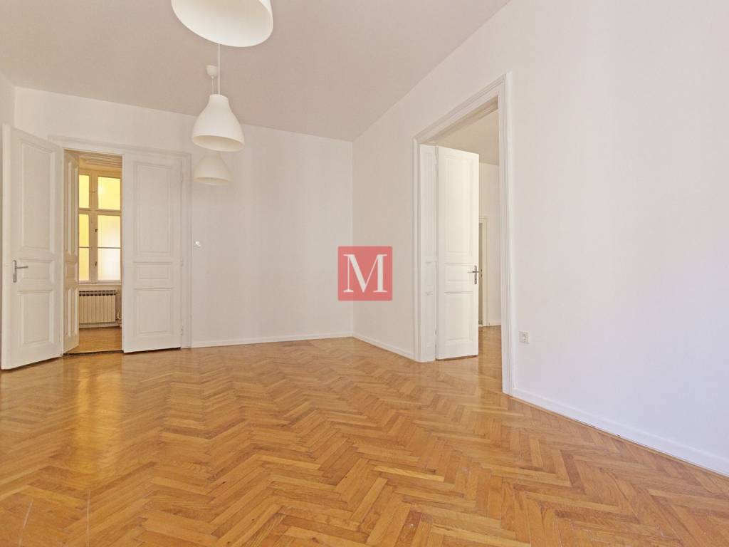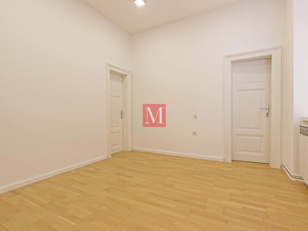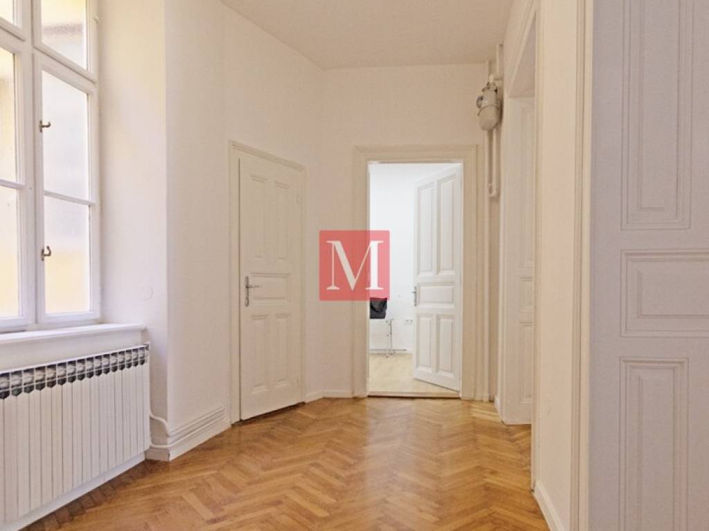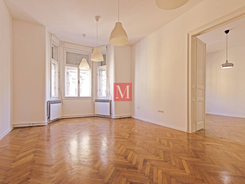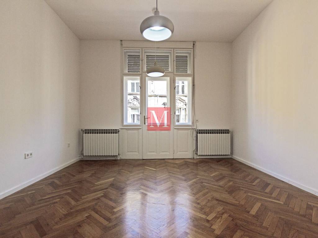 Newly renovated 3-bedroom apartment net usable area 120.75 m2 on the 2nd floor of a representative building without an elevator in the city center - Đorđićeva street. It consists of an entrance hall, 3 large rooms in a row (one of which has an exit to the balcony), a smaller study, kitchen, bathroom, separate toilet and storage room. New installations were installed in the space, and the external and internal carpentry and parquet were renewed. The building has a new facade and structural renovation was completed in 2025. Parking is public, zone 1 in front of the building, or in one of the nearby public garages. Excellent location, close to all necessary facilities. Agency commission: 3% + VAT.