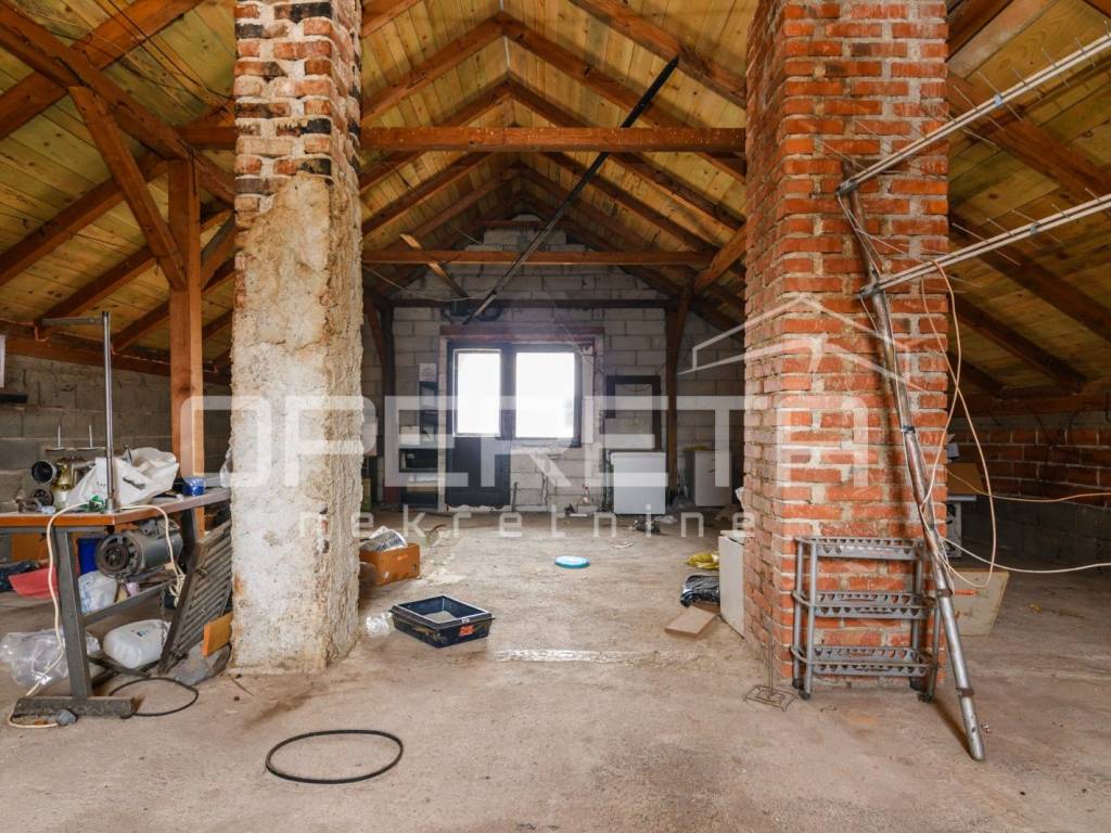 PRODAJA, KUĆA, ZAGREB, SVETA NEDELJA, JEŽDOVEC, 270m2, SAMOSTOJEĆA, Kuća se sastoji od prizemlja, kata , potkrovlja, garaže i drvarnice . Prizemlje ima 71m2 zatvorenog prostora te se sastoji od: hodnika, ostave, kupaonice s wc-om, ulaznog holla , kotlovnice, kuhinje i 2 sobe. Kat ima 74m2 zatvorenog prostora te se sastoji od: kuhinje i blagovaonice, hodnika, kuhinje i 2 spavaće sobe. Potkrovlje 82m2 je neuređeno s potencijalom za uređenje u dodatni stambeni dio. Iza kuće se nalazi garaža i drvarnica te pušnica. Prostrana okućnica daje osjećaj širine te mogućnosti za dodatno uređenje za vrt, bazen, parkić, sjenicu za druženja....Jako mirna lokacija, 50m od glavne prometnice, javni prijevoz na 5 min. pješice. PREPORUČUJEMO!