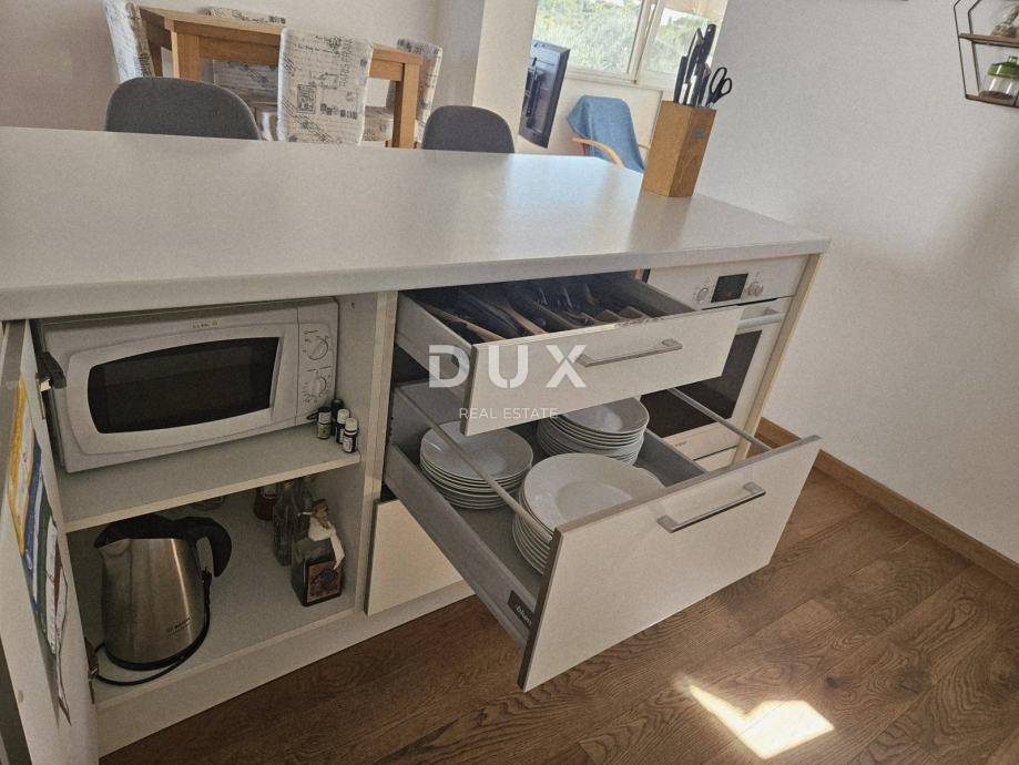 In our offer we offer you a beautifully decorated apartment in a quiet location near the sea! It is located in a smaller building with only three apartments. This is a beautiful and quality property that offers its future owners maximum comfort and quality! The apartment consists of a kitchen and living room, two bedrooms, a balcony, a bathroom, 2 parking spaces and a garden, with a total area of 63.35 m2. The apartment is fully furnished and is being sold as such.