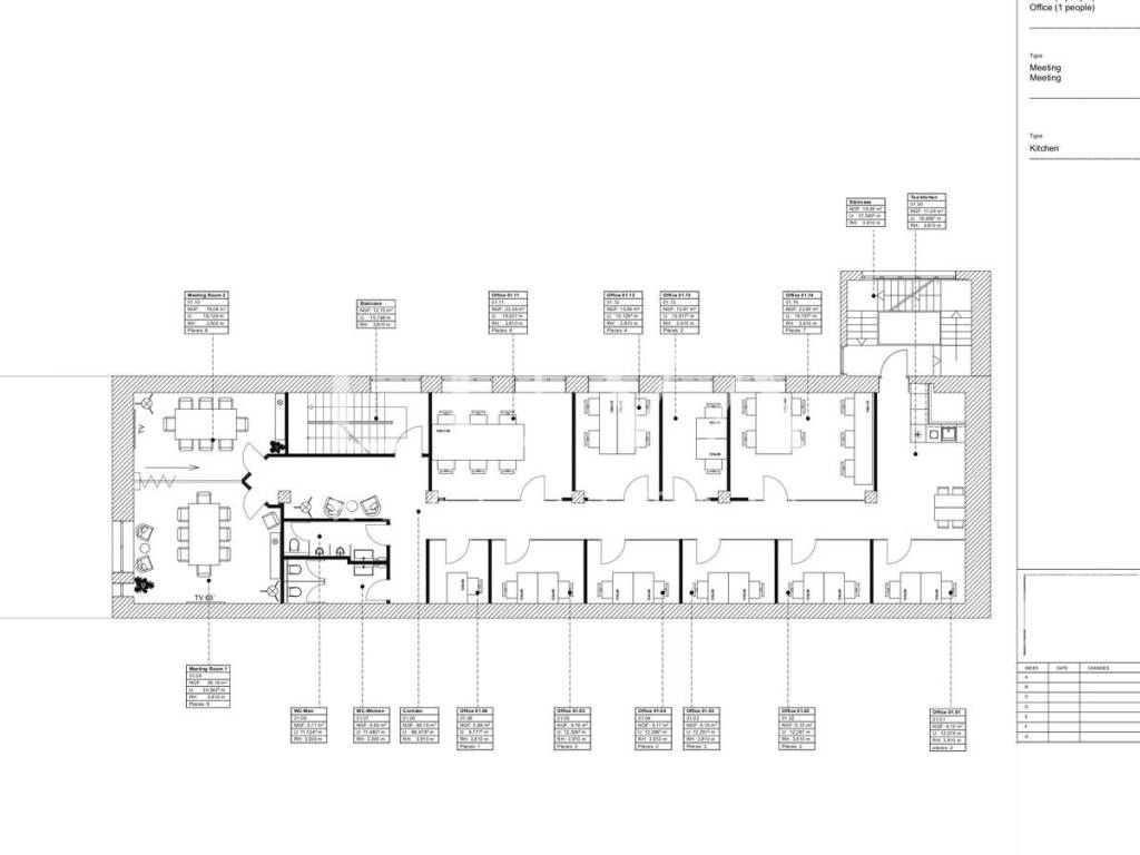Sastoji se od ulaznog prostora, deset uredskih prostorija, kuhinje, blagovaonice, sanitarnih čvorova, sobe za sastanke i hodnika.