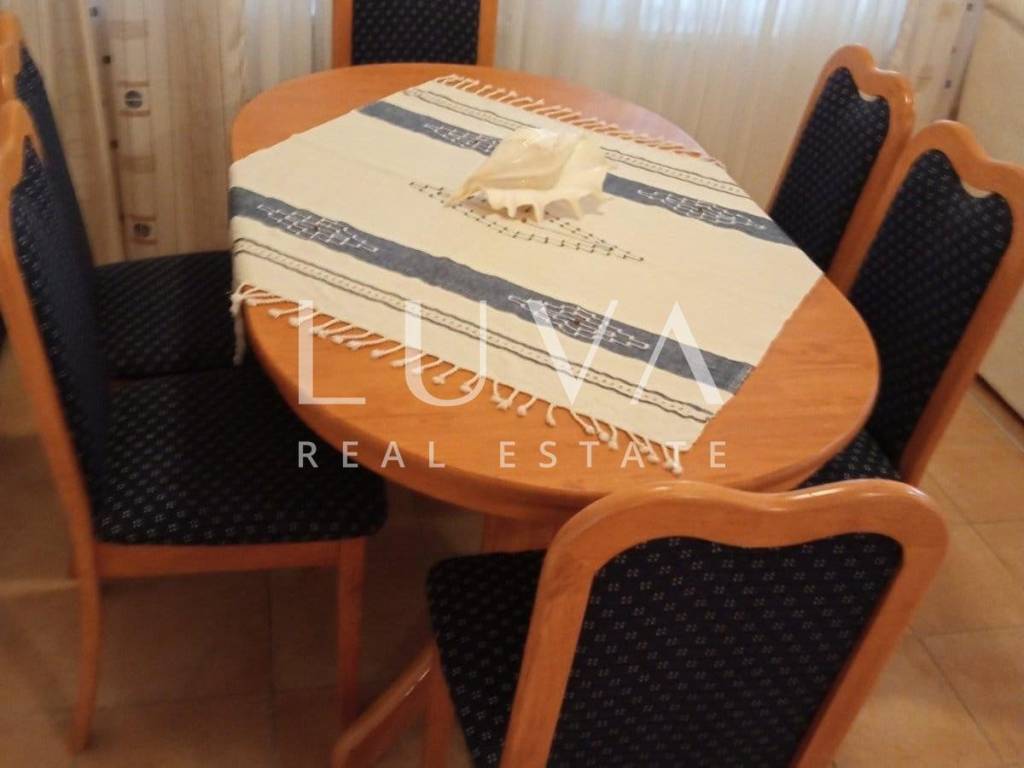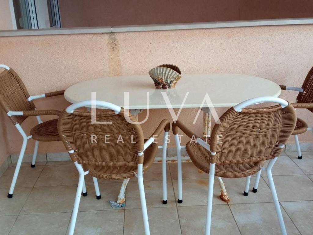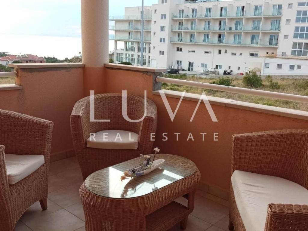 Apartment for sale, fully furnished and ready to move in, located in the very center of Novalja, one of the most sought-after tourist destinations on the Adriatic. The apartment is located on the first floor of a well-maintained residential building and is ideal for personal use or as a safe investment for tourist rental.