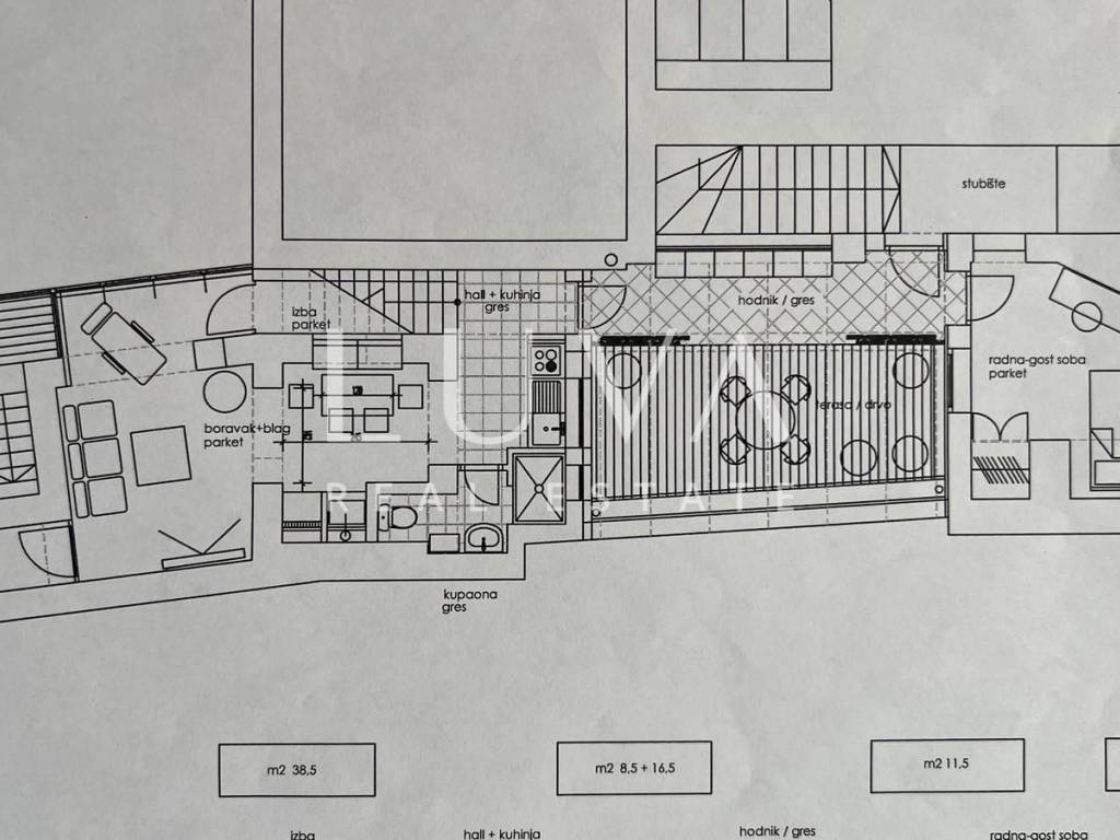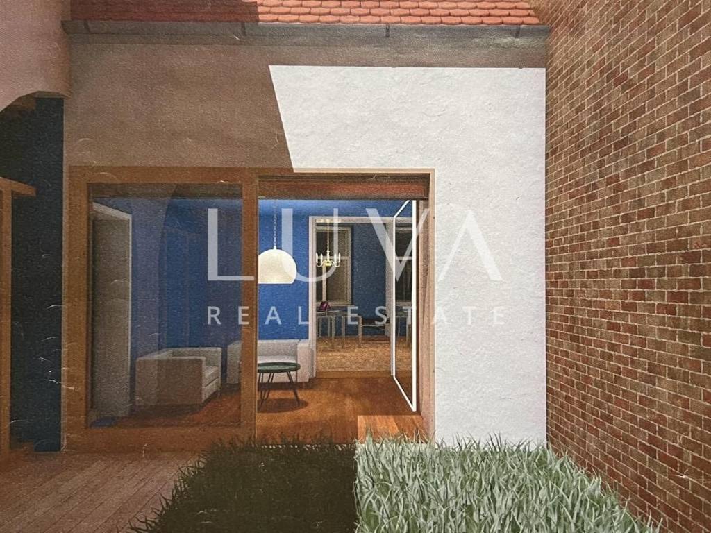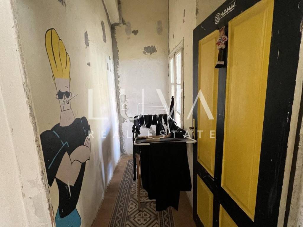 For sale: a 105 m² net apartment with full ownership (1/1), including a 25 m² terrace. It is located on the first floor of the building and requires renovation.