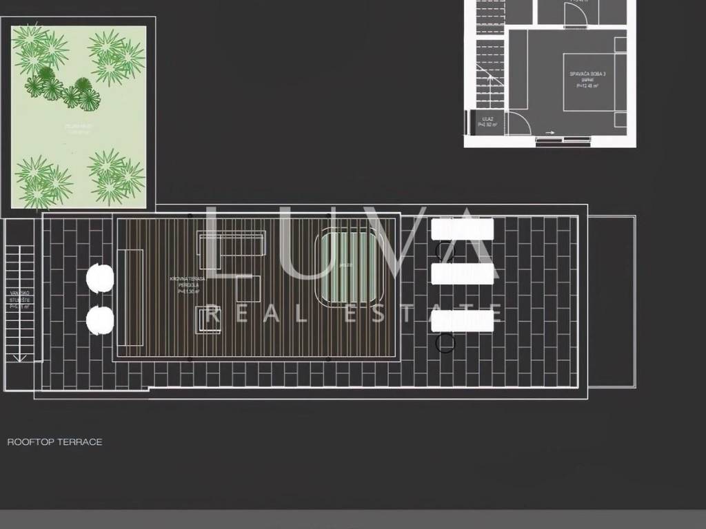 The penthouse is connected by an internal staircase, and it comes with a rooftop terrace of 91.30 m² with a jacuzzi, offering a complete relaxation experience. Additionally, there are two parking spaces available.