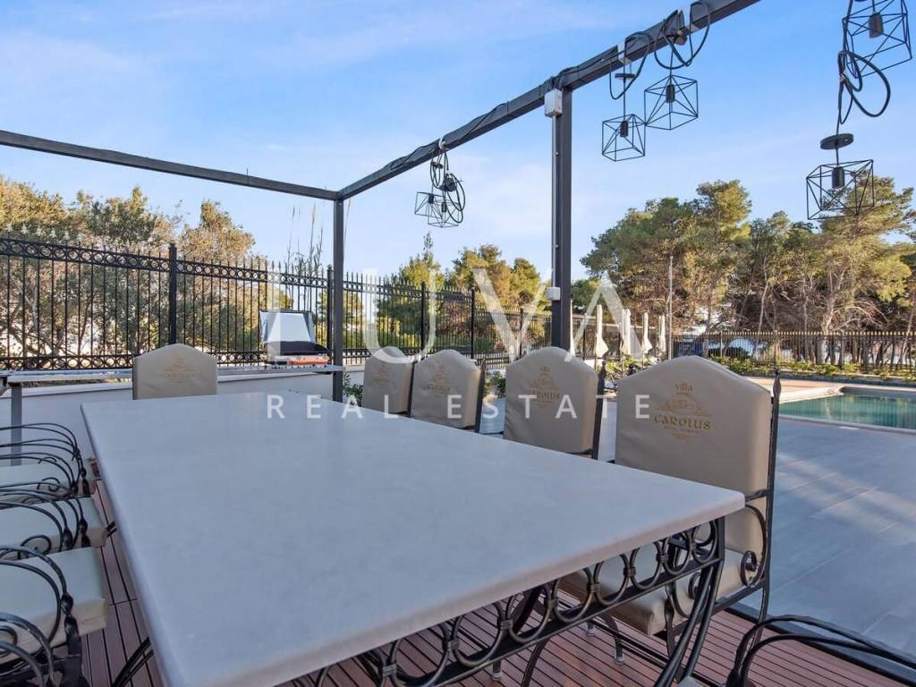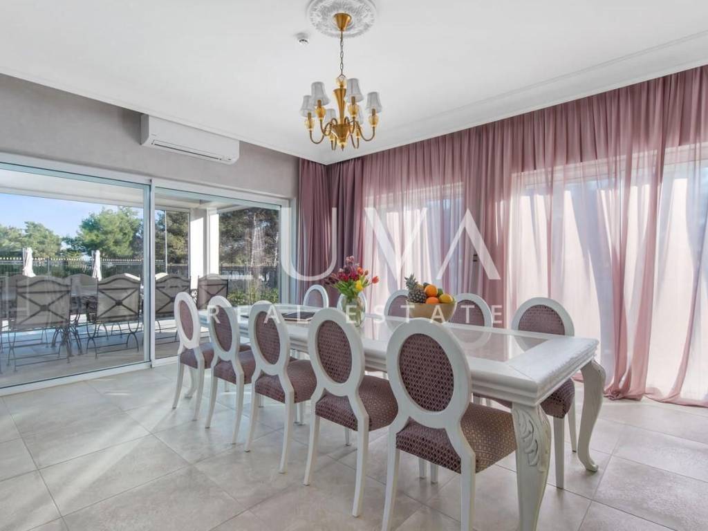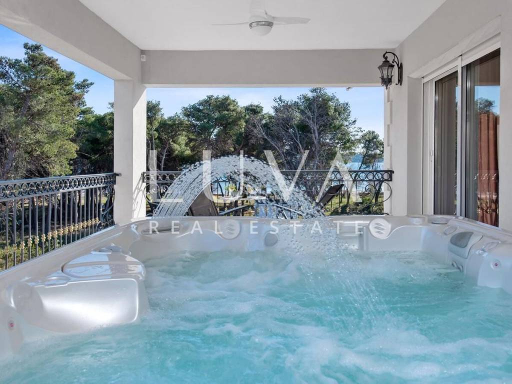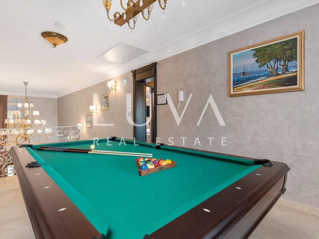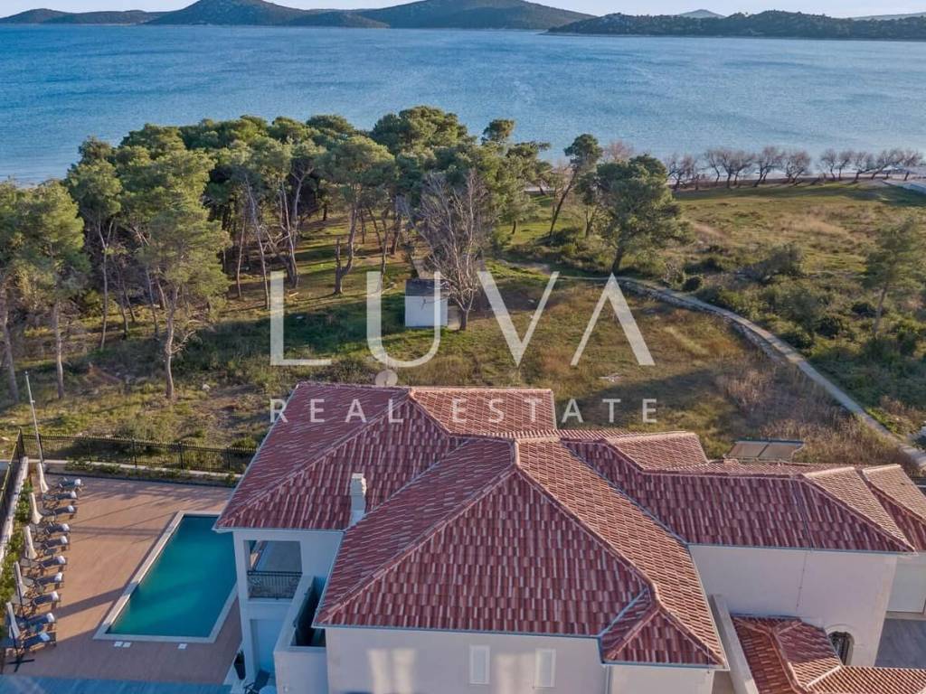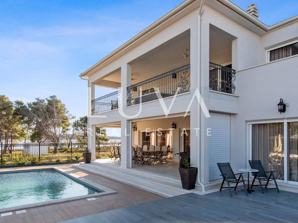 A luxury villa with a swimming pool is for sale, located right by the sea in Vodice, and the entire property of the villa is completely fenced. The villa extends over two floors and contains numerous additional facilities such as a swimming pool, Jacuzzi, sauna, billiards... It has a spacious living room, a fully equipped kitchen and 5 bedrooms with ensuite bathrooms. This property is an excellent investment opportunity with an established rental business.