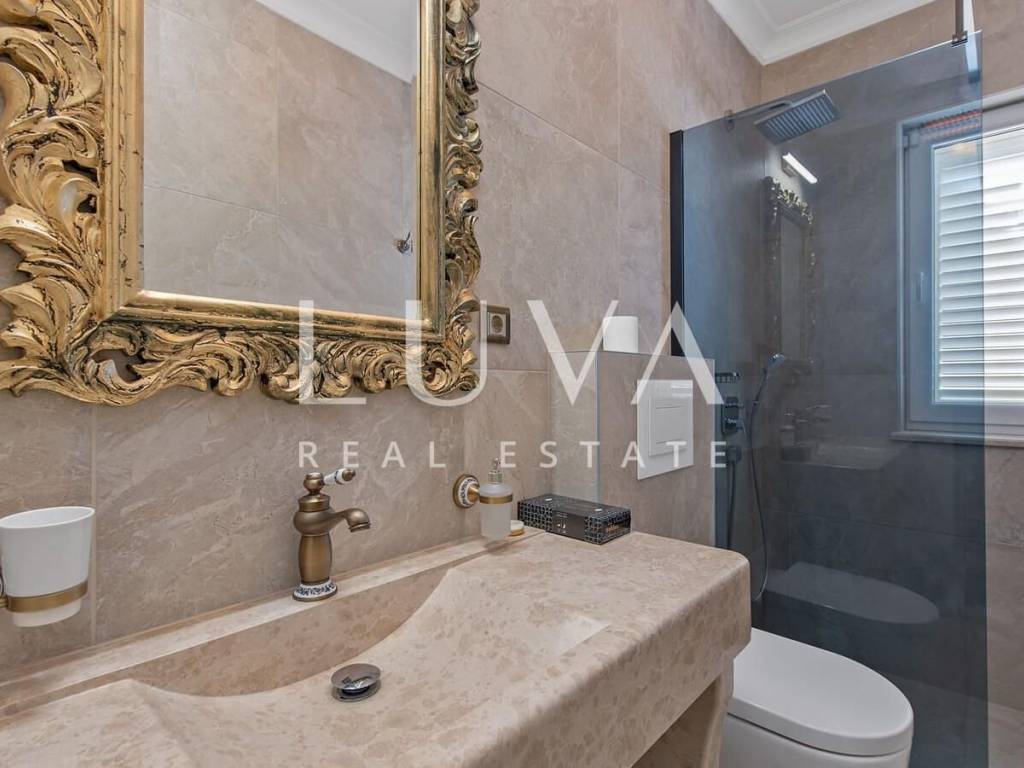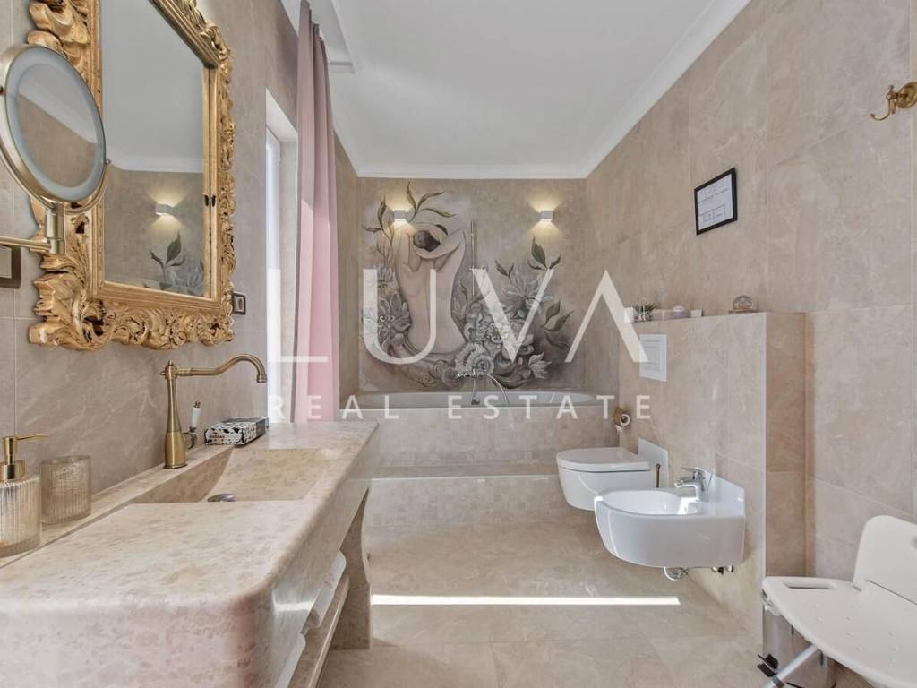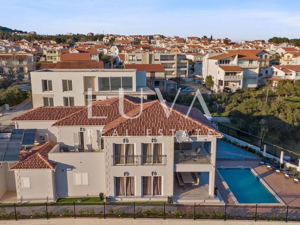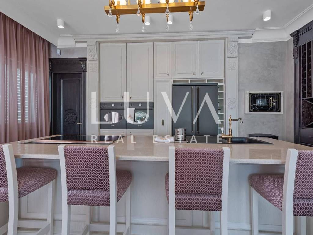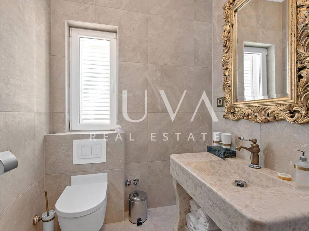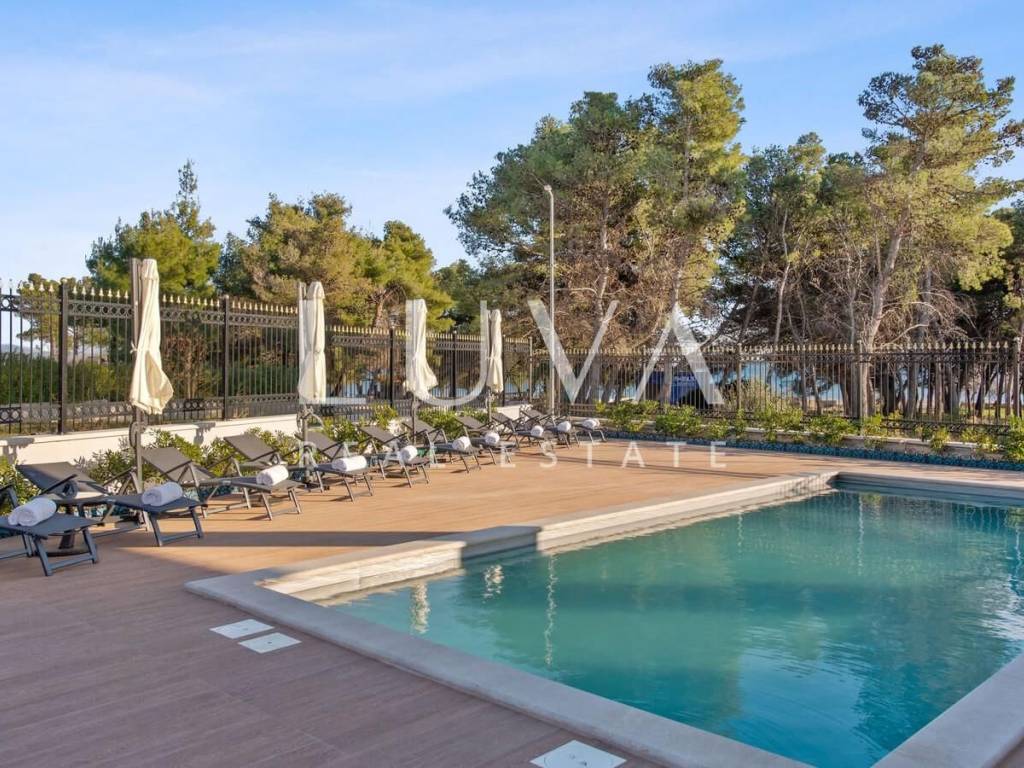 A luxury villa with a swimming pool is for sale, located right by the sea in Vodice, and the entire property of the villa is completely fenced. The villa extends over two floors and contains numerous additional facilities such as a swimming pool, Jacuzzi, sauna, billiards... It has a spacious living room, a fully equipped kitchen and 5 bedrooms with ensuite bathrooms. This property is an excellent investment opportunity with an established rental business.