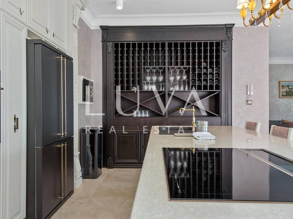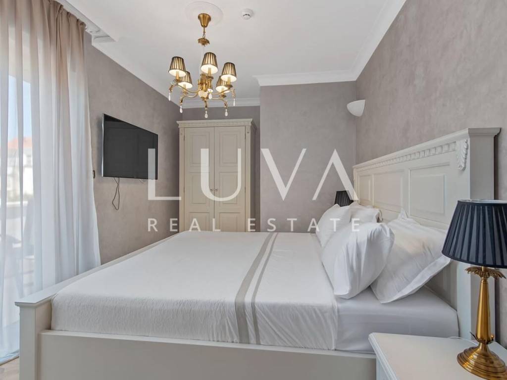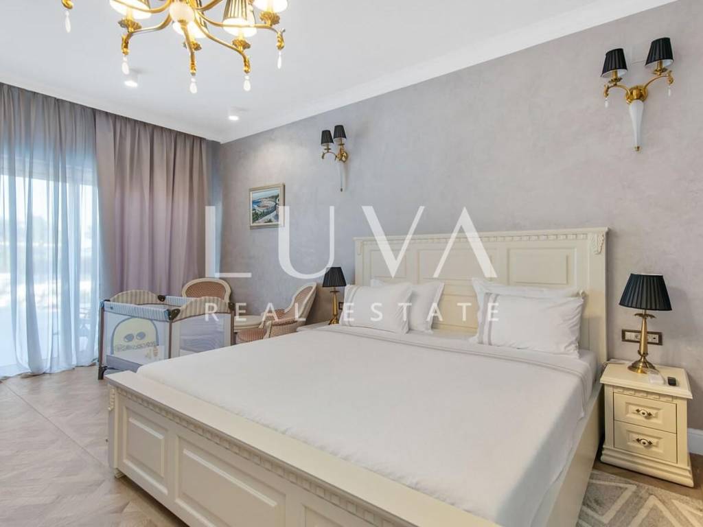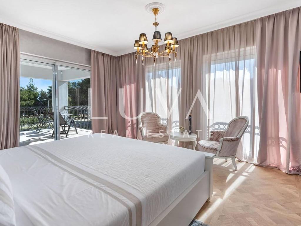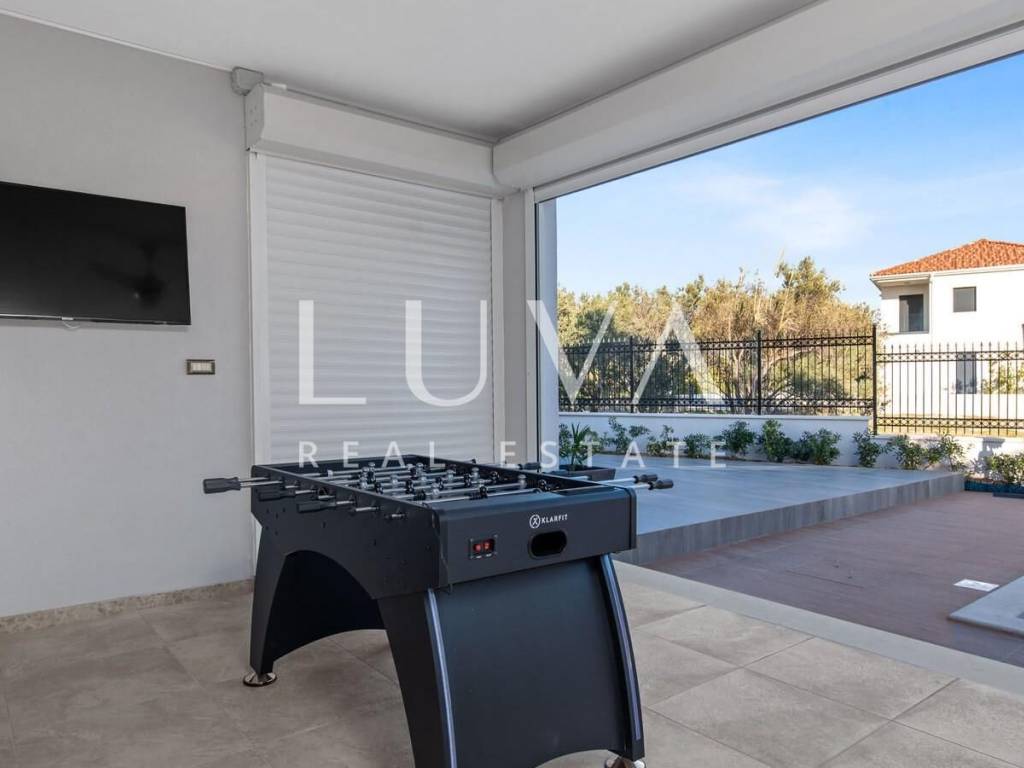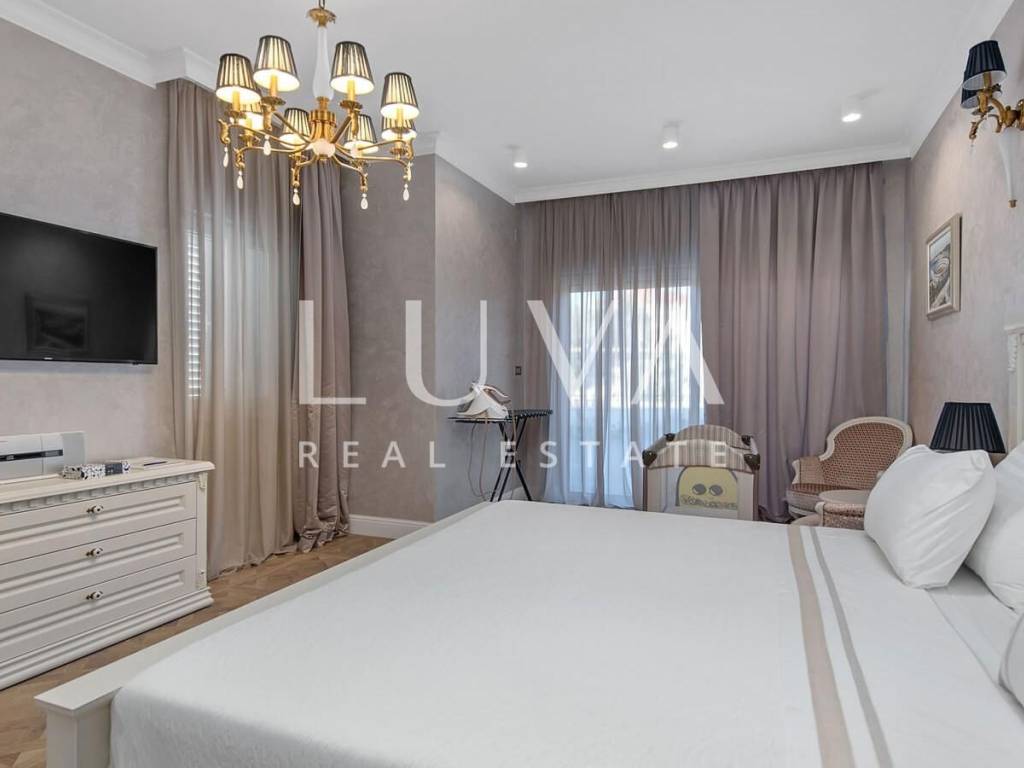 A luxury villa with a swimming pool is for sale, located right by the sea in Vodice, and the entire property of the villa is completely fenced. The villa extends over two floors and contains numerous additional facilities such as a swimming pool, Jacuzzi, sauna, billiards... It has a spacious living room, a fully equipped kitchen and 5 bedrooms with ensuite bathrooms. This property is an excellent investment opportunity with an established rental business.