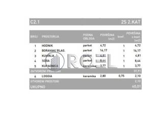 Two-bedroom apartment with a total area of 40.40 m, located in the Dubrava district of Zagreb. It is located on the second floor of a building with a total of 6 floors. It consists of an entrance hall, living room with kitchen and dining room, one bedroom, bathroom with toilet and a loggia. It is oriented to the north.