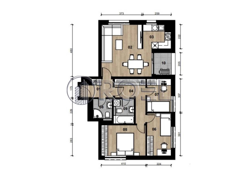 In addition to the reinforced concrete structure and earthquake-resistant construction, the apartments are characterized by carefully selected premium equipment, and the ceiling height is 2.62 m. Burglar- and fire-resistant entrance doors with enhanced sound insulation have been installed, wood-aluminum exterior joinery with three-layer IZO glass and aluminum shutters, and high-quality interior joinery of modern design. The floors are covered with first-class oak parquet in all living areas, while the bathrooms and loggias are equipped with large-format ceramics from renowned Italian manufacturers.