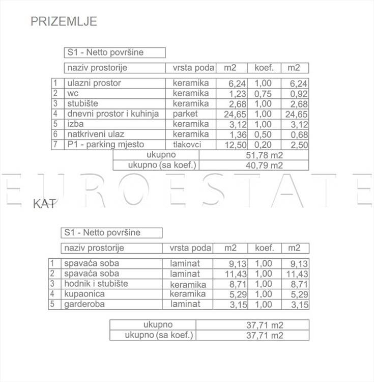 - ukupna bruto površina nekretnine je 151.55 m2, a neto obračunska korisna površina nekretnine je 84.71 m2,