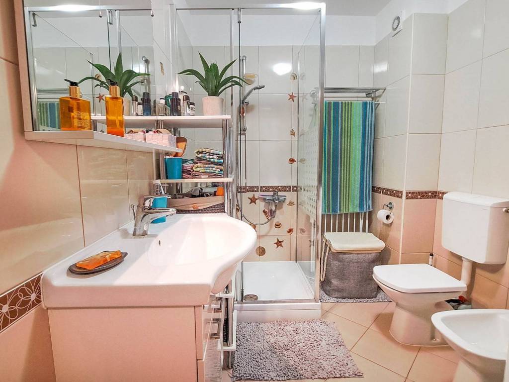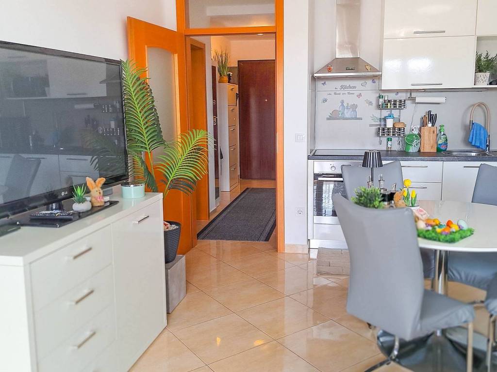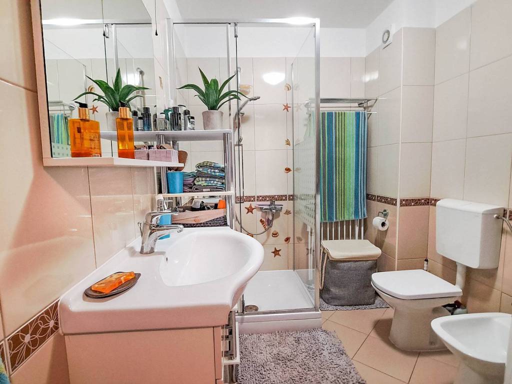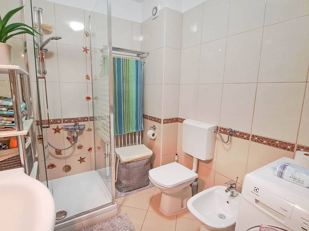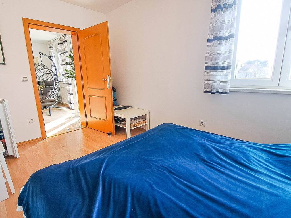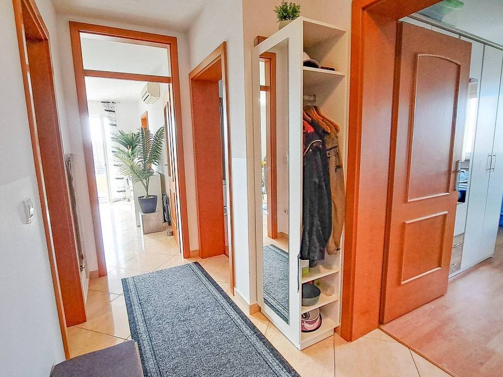 Beautiful spacious three-bedroom apartment on the first floor in Ližnjan in a great location near the beaches with a total net reduced area of 84.60 m. It consists of an open-space living room with kitchen and dining room, three bedrooms, two bathrooms, two terraces and a hallway. The larger terrace has a beautiful view of the sea. The apartment has one parking space. The apartment is sold fully furnished as in the pictures. The documentation is in order (use permit, condominium)!