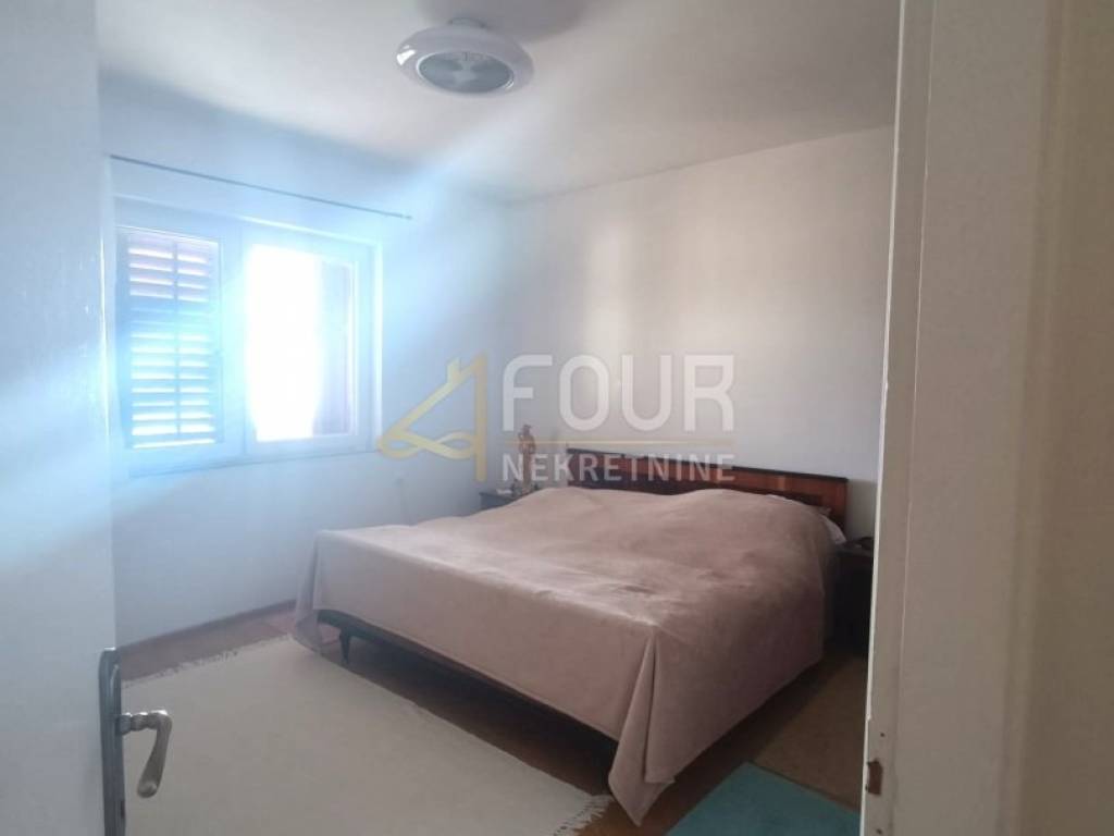 In vendita un appartamento in una casa a Lovran, situato al primo piano, orientato a sud, con una superficie totale di 80 m2. È composto da due camere da letto, di cui una utilizzata come guardaroba, cucina separata, soggiorno con sala da pranzo e un ampio bagno. Dall'appartamento si gode di una bella vista sul mare, a soli 200 metri di distanza dal mare.