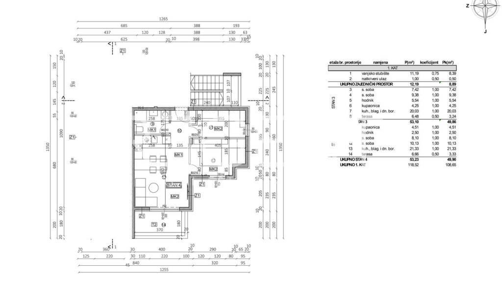 L'appartamento 3 si trova al primo piano dell'edificio sud in un moderno complesso di nuova costruzione a Traù e rappresenta un'ottima scelta per coppie, famiglie più piccole o acquirenti che cercano un investimento sicuro per l'affitto turistico o a lungo termine. Si tratta di un appartamento funzionale e luminoso in un ambiente tranquillo che consente una vita quotidiana piacevole, ma anche un rapido collegamento con tutti i servizi importanti della città. La superficie netta totale dell'appartamento è di 49,86 m², e la disposizione è progettata per sfruttare al massimo lo spazio. L'appartamento è composto da un corridoio, un bagno, due camere da letto e un open space cucina, sala da pranzo e soggiorno di 20,03 m² che costituisce la parte centrale della casa. Dal soggiorno si accede alla terrazza di 6,48 m² che offre uno spazio esterno aggiuntivo per il relax, i momenti conviviali all'aperto o il caffè mattutino. L'appartamento è dotato di climatizzatori, riscaldamento a pavimento, serramenti in PVC e porta blindata, garantendo un elevato livello di comfort, efficienza energetica e sicurezza abitativa. La posizione offre un ottimo equilibrio tra un ambiente tranquillo e le infrastrutture cittadine. Nelle immediate vicinanze si trovano negozi, scuole, asili, ristoranti e mezzi pubblici, mentre il mare e le spiagge distano pochi minuti in auto o con una piacevole passeggiata. Il collegamento con il centro di Traù e le principali strade consente spostamenti facili e veloci, il che rende questa microlocalità attraente sia per la vita quotidiana che per l'affitto turistico. L'appartamento fa parte di un moderno progetto residenziale che comprende tre edifici e ad ogni unità residenziale è assegnato un posto auto incluso nel prezzo. La costruzione viene eseguita secondo standard moderni e l'acquisto è possibile per fasi di costruzione. Per ulteriori informazioni, planimetrie o per concordare un appuntamento per una visita, non esitate a contattarci.