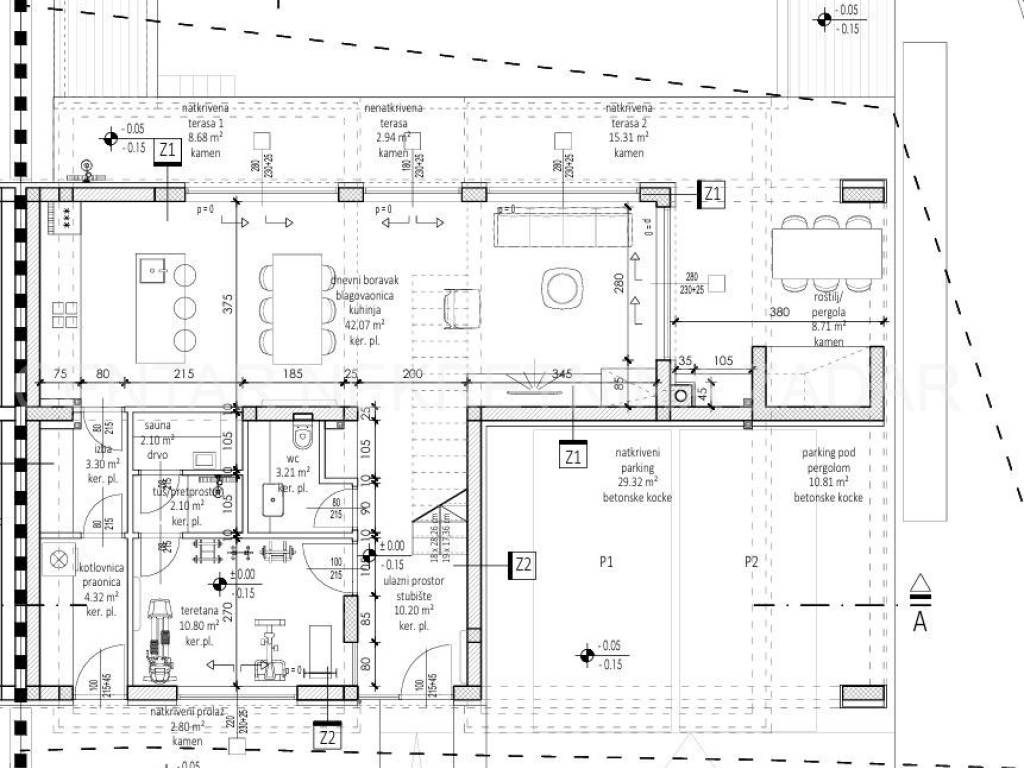 A villa with a swimming pool is for sale in Zaton, located in a quiet part of the town. It was built on a plot of 440 m, and the living area of about 220,43 m is distributed over the ground floor and first floor.