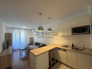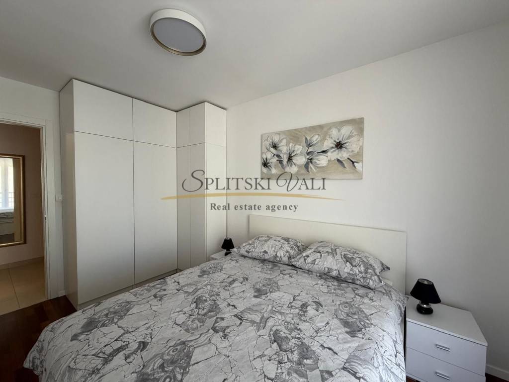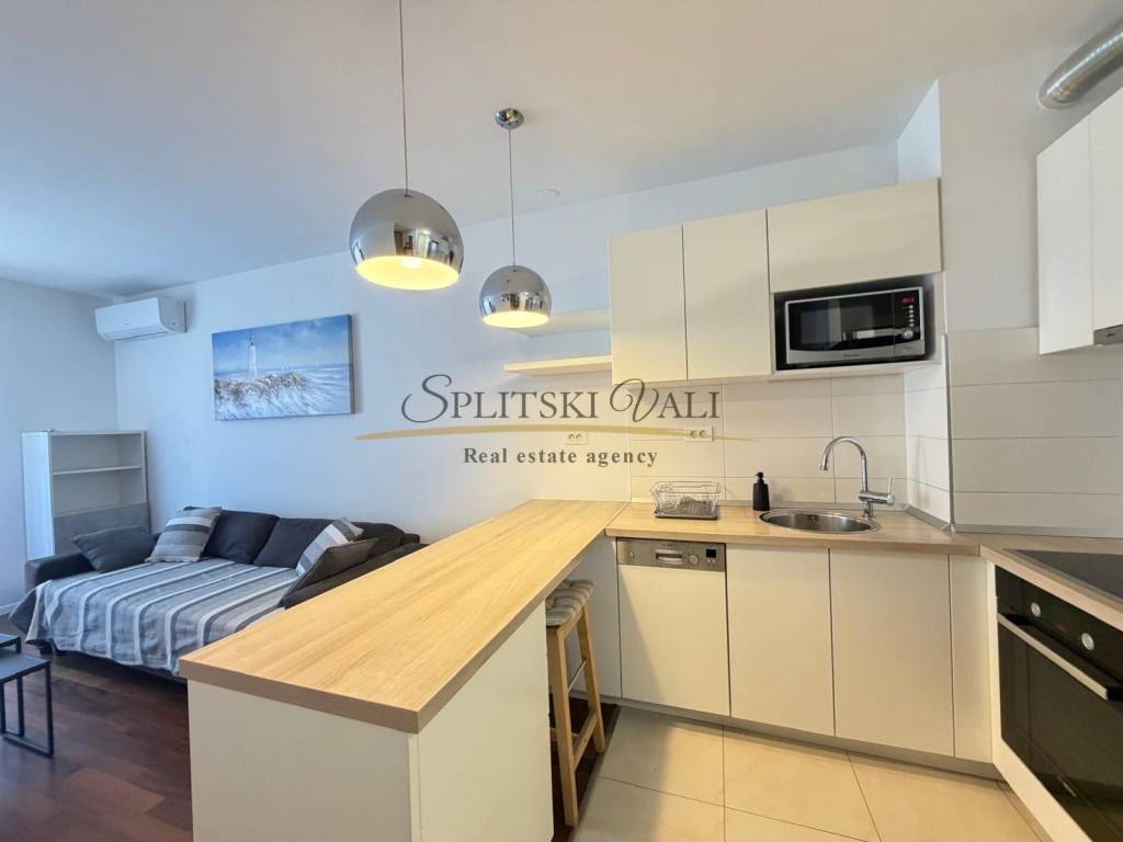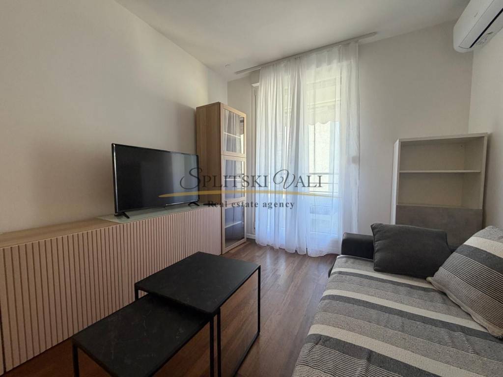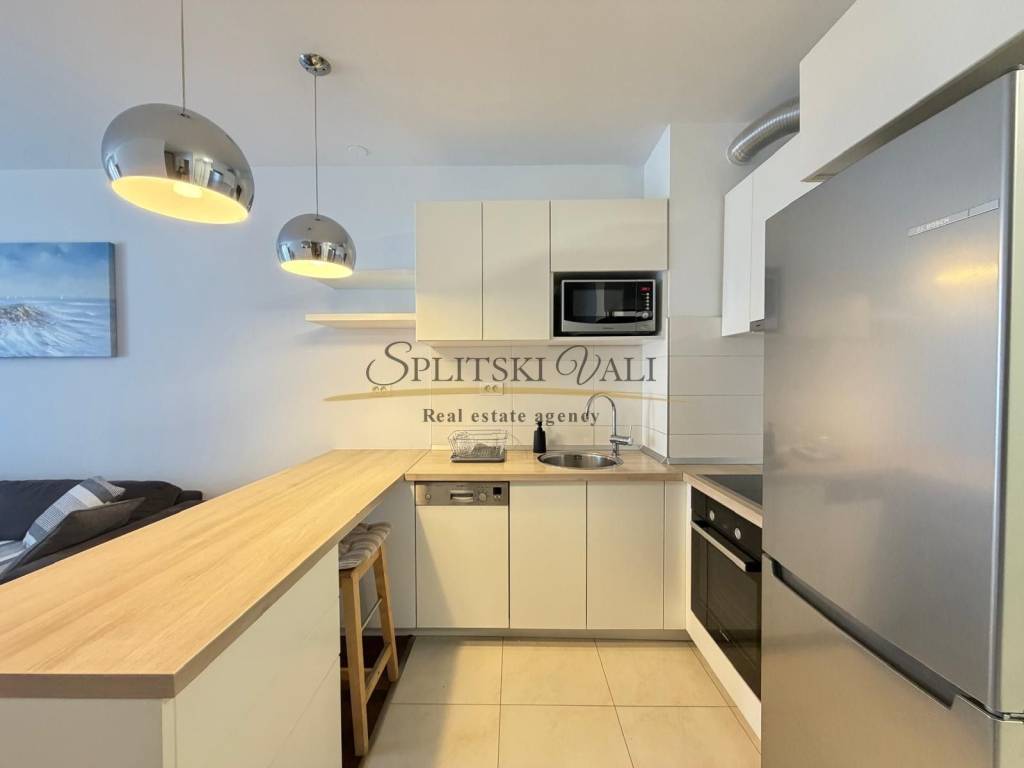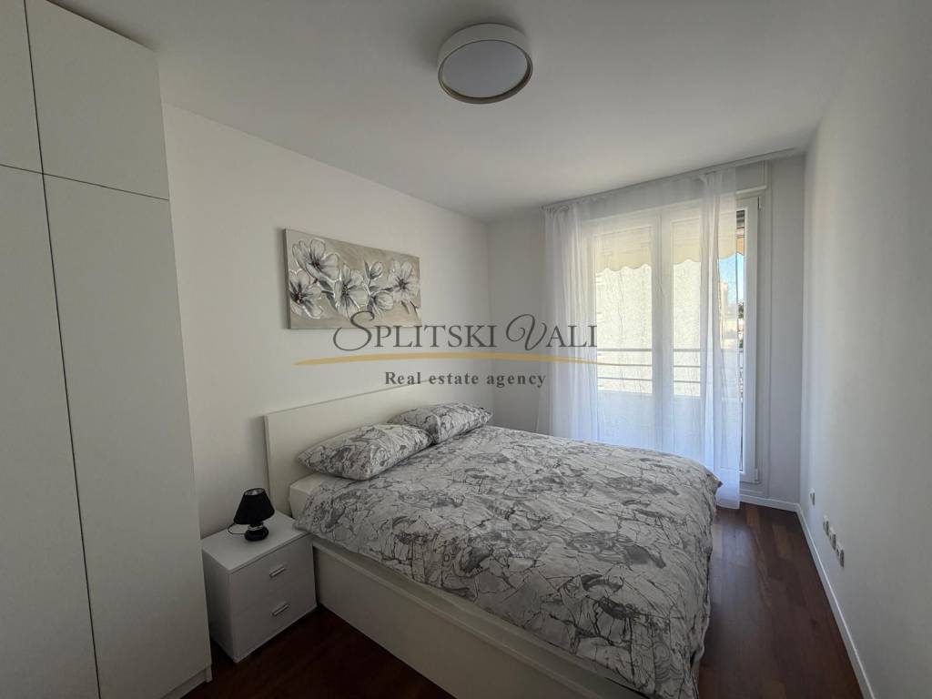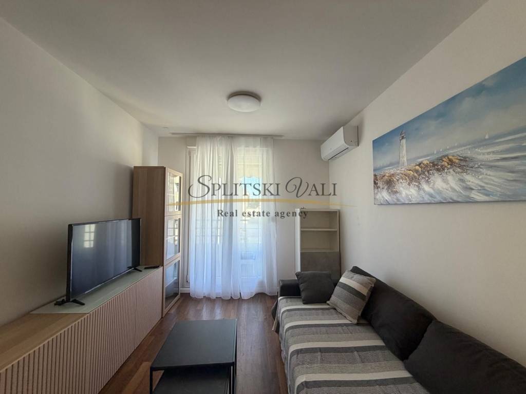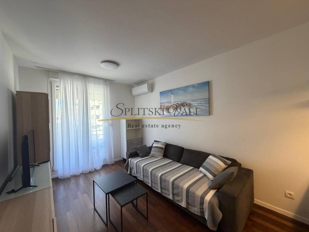 Posredujemo u najmu modernog jednosobnog stana na Žnjanu - Makarska ulica. Stan je položen na trećoj etaži stambene zgrade novije gradnje, s liftom. Osim jedne spavaće sobe, stan se sastoji od kuhinje, dnevne sobe, predsoblja i hodnika, kupatila te prostranog balkona. Stanu također pripada i jedno parkirno mjesto u garaži.