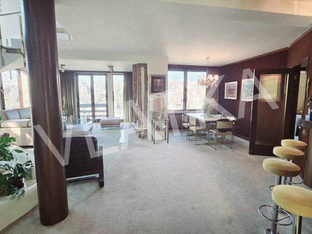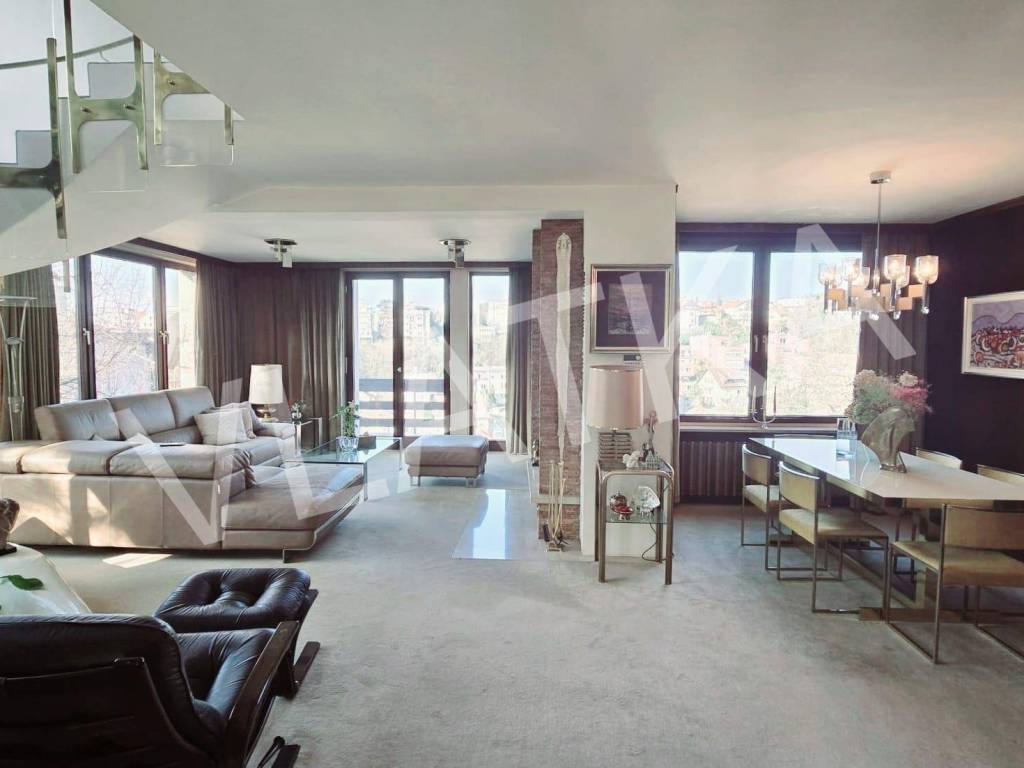 2° appartamento: pentalocale (su 2 piani): ingresso, soggiorno e sala da pranzo, cucina, ripostiglio, 2 camere da letto, soggiorno supplementare, studio, 2 bagni, toilette