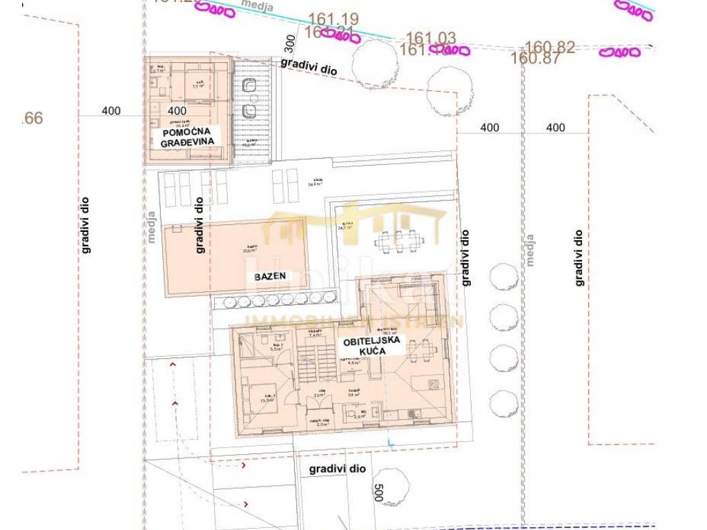 Il terreno ha una forma piacevole ed è stato realizzato un progetto preliminare per una casa con 3 camere da letto e piscina, oltre a una dependance per gli ospiti (soggiorno/cucina, camera da letto, bagno e terrazza).