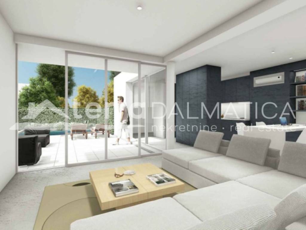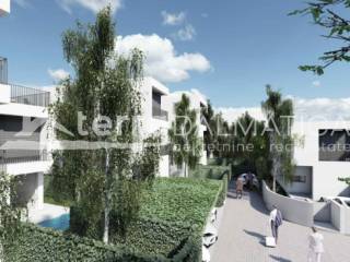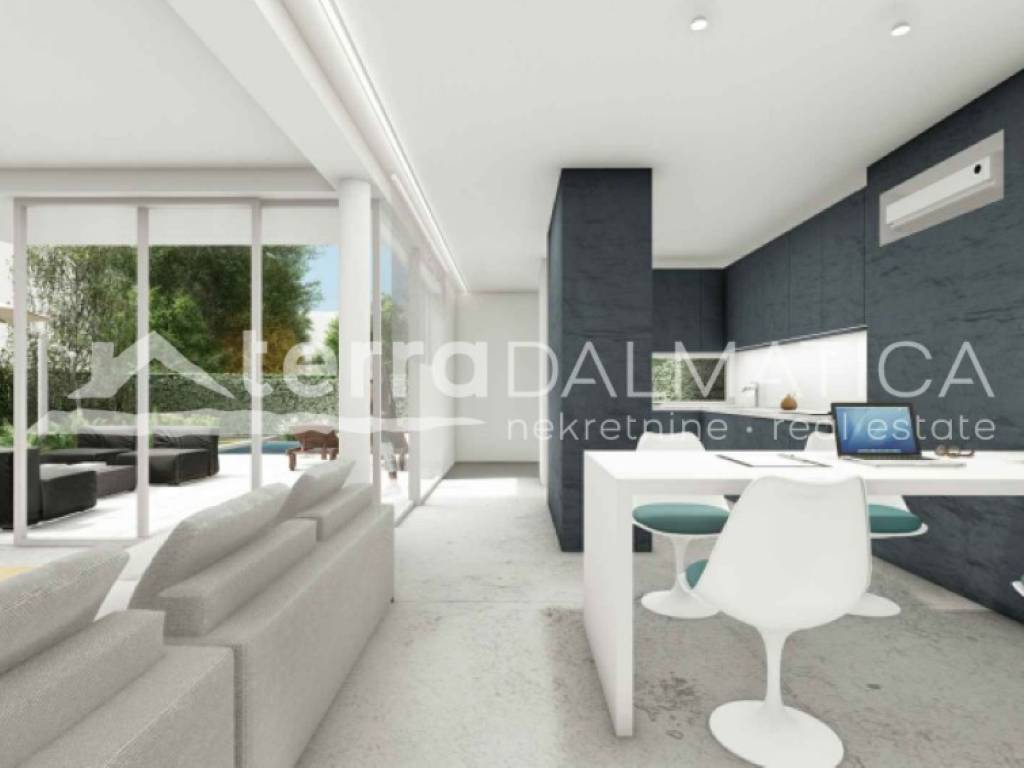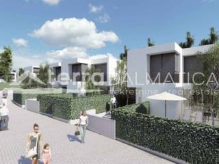 A modern terraced villa of 109 m² is for sale, located in a quiet and well-maintained village in Tribunj, surrounded by villas of contemporary architecture.