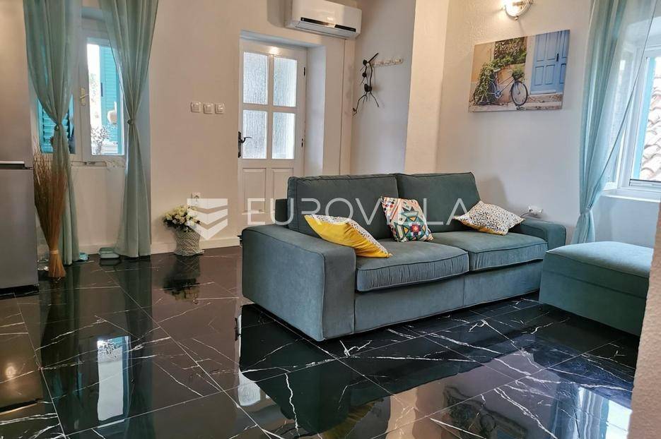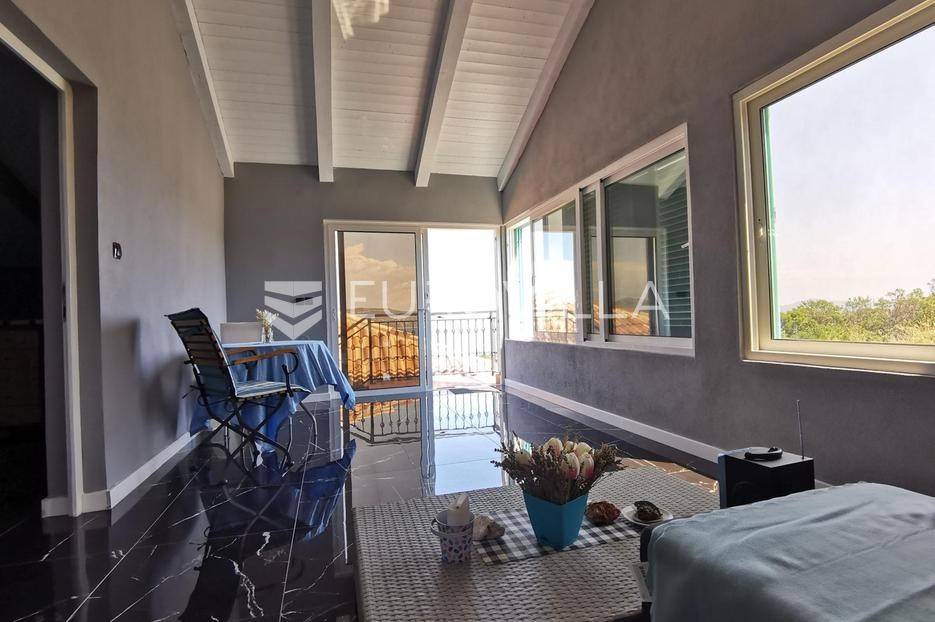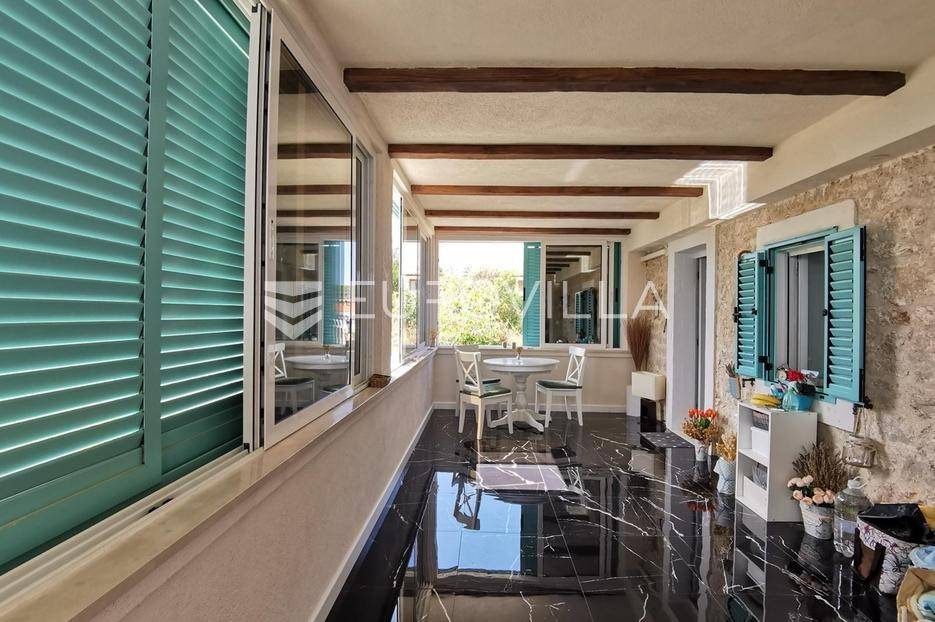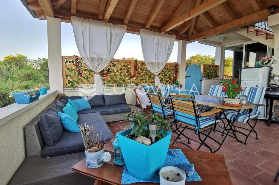 Zadar, Mali Iž, jedinstvena kamena kuća s prekrasnim pogledom koji ostavlja bez daha.Smještena je na samom vrhu Malog Iža u naselju Mućel na kraju slijepe ulice. Pozicija i orijentacija vlasniku pruža potpuni mir i privatnost bez susjedstva koje je okruženo s autohtonih i mediteranskih bilja.Udaljenost od mora je cca 600 metara (10 minuta hoda) od mora - Bršanj (trajektno pristanište).Koncipirana je na tri etaže (svaka po 83m2) plus natkrivena terasa od 30m2 koja pruža najljepši pogled s Iža na more i zadarski arhipelag, a zahvaljujući jedinstvenoj poziciji također svaka etaža ima otvoreni pogled na more. U nastavku terase je moguće napraviti bazen sa sunčalištem iz kojeg bi se pružao pogled na more.Kuća je dizajnirana u mediteranskom stilu, dok u interijeru prevladava i modreni stil. Na temelju stare kamene kuće napravljena je nova kamena kuća s betonskim pločama i u skladu s novim standardima gradnje.Prva etaža (prizemlje) se sastoji od dvije spavaće sobe, dnevnog boravka, kupaonice, stilske kuhinje s najmodernijim aparatima, te zatvorene terase od 20m2 s kliznim stijenama iz koje se izlazi na vanjsku natkrivenu terase od 30 m2.Do druge etaže (prvi kat) pristupa se vanjskim stepenicama koje ukrašava kovana ograda. Raspored prostorija na katu čine dvije spavaće sobe od kojih jednoj pripada balkon s pogledom na more, dnevnog boravka, kupaonice, kuhinje te terase od 20 m2 s kliznim stijenama.Etaža -1 je poluuređena te ima sve uvijete da se može organizirati kao stambeni prostora, konoba, wellness ili sl.Cijela kuća je stilski uređena s pomnom biranim materijalima i namještajem kako bi pružila topao i kvalitetan prostor za život ili boravak. Staklene klizne stijene (izo reflektriajuća stakla) i škure su aluminijske, a prozori drveni. U glavnim prostorijama na obe etaže proteže se gres keramika, a obje etaže su klimatizirane.Mali Iž, naselje na zadarskom otoku Ižu, nalazi se na sjevernoj strani otoka koji je trajektnim i brodskim linijama povezan s kopnom. Mali Iž je idealna destinacija koja nudi sve potrebno za miran odmor daleko od turističke vreve. Kako se oko otoka nalazi desetak manjih otočića i hridi, nautičari i ljubitelji ronjenja imat će dovoljno lokacija za istraživanje, a s Iža se mnogi upućuju i do Nacionalnog parka Kornati.Ostale informacije na upit.... Više na eurovilla.hr, ID: 100593