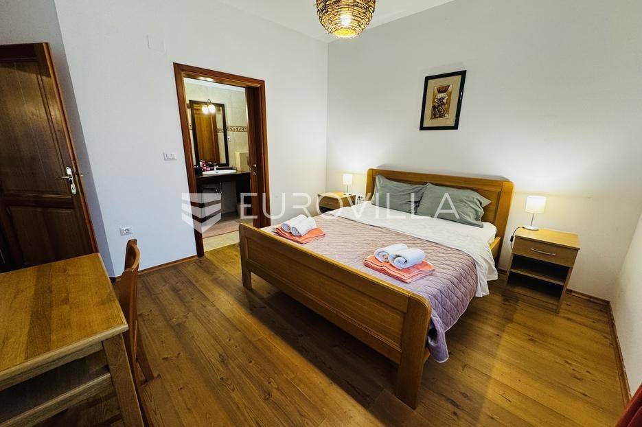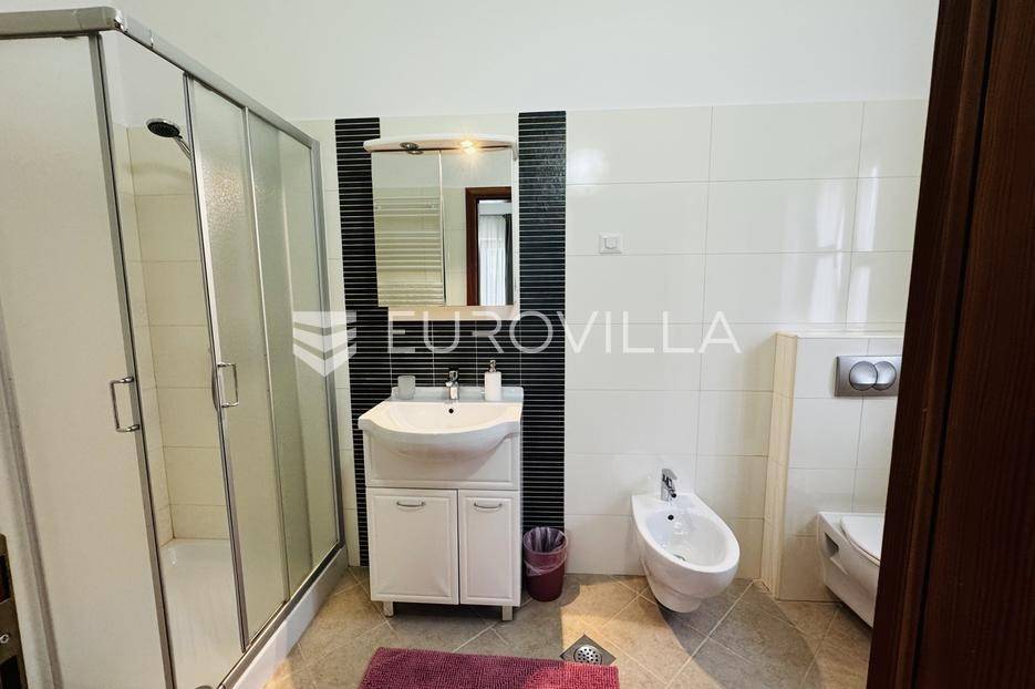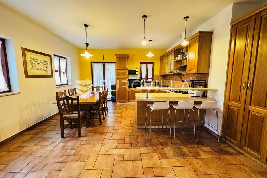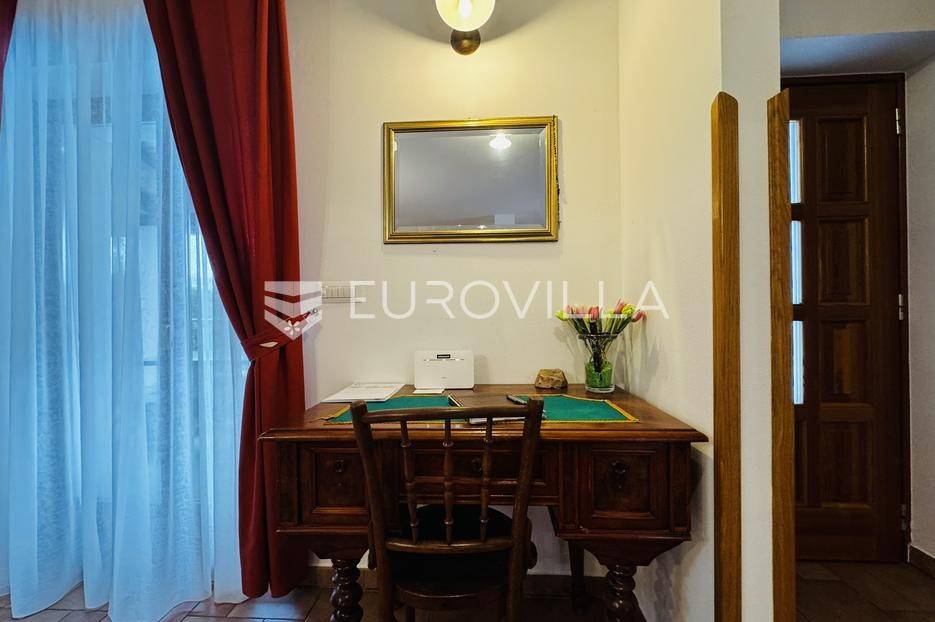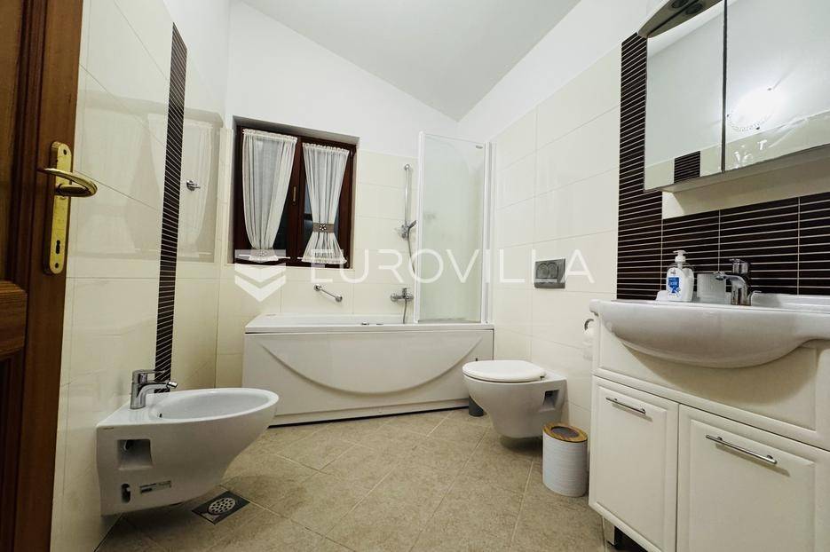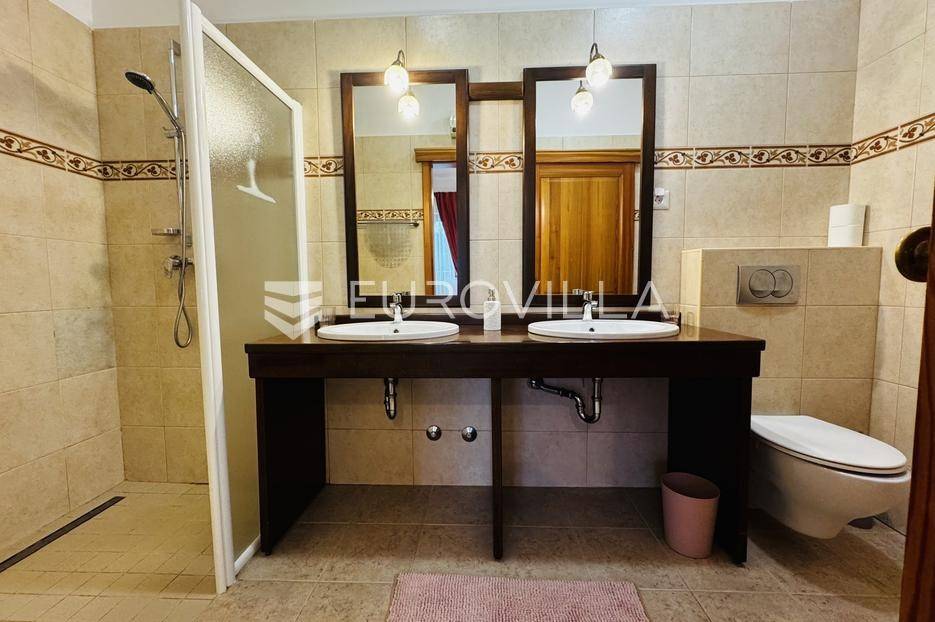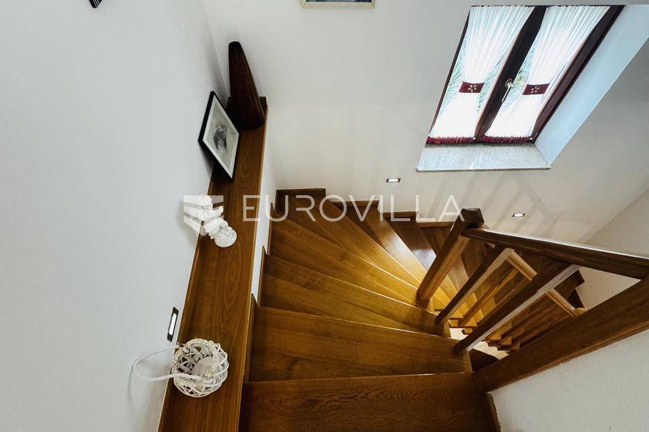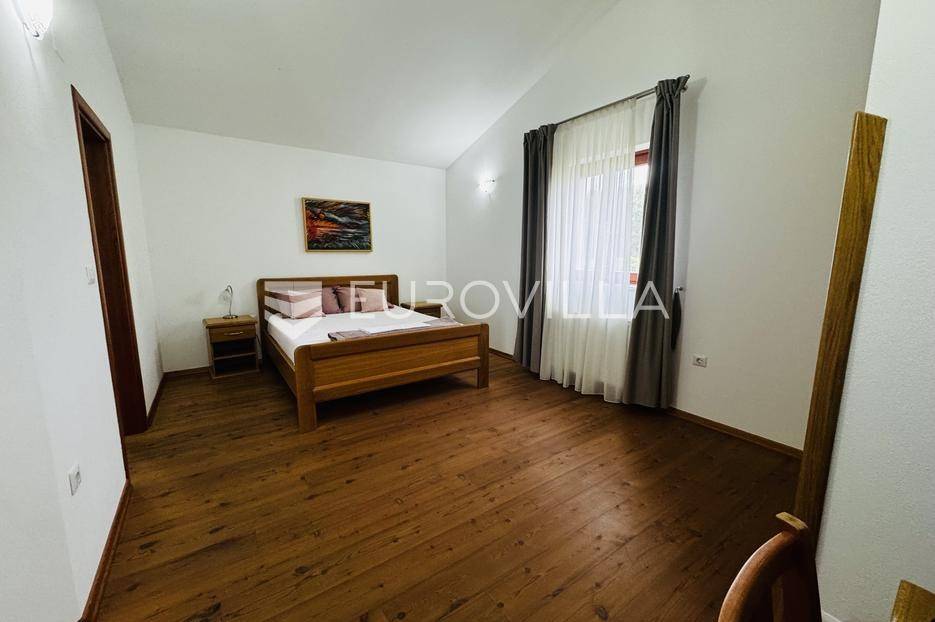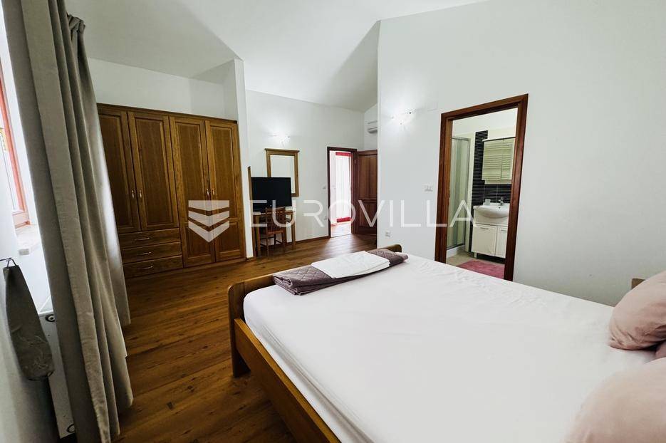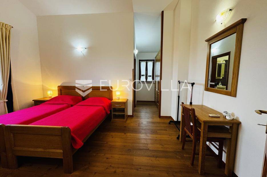 Istra, Tinjan, šarmantna samostojeća villa u srcu Istre.Svega 15-ak kilometara od grada Poreča smjestila se prekrasna villa. Izgrađena je 2010. godine, kuća je građena u izvornom istarskom stilu kombinacijom modernih i tradicionalnih materijala na okućnici od cca 800 m2.U prizemlju ville nalazi se opremljena kuhinja s blagovaonicom, prostrani dnevni boravak s tradicionalnim kaminom, toalet za goste, spavaća soba s vlastitom kupaonicom i spremište ispod stepeništa. Na prvi kat vodi nas betonsko stepenište popločano prekrasnim drvenim oblogama. Tu su se smjestile dvije prostrane spavaće sobe s vlastitim kupaonicama koje povezuje hodnik koji ima izlaz na nenatkrivenu terasu s koje se pruža prekrasan pogled na more.Kuća se grije s pomoću plinskog podnog grijanja i kamina a hladi s pomoću klima uređaja.Na velikoj okućnici smjestio se bazen od cca 25 m2, plaža, vanjski tuš, natkrivena terasa s kaminom za uživanje s obitelji i prijateljima. Na bočnoj strani kuće nalazi se i kotlovnica.Hortikultura je prekrasno održavana, cijeli teren okružuje visoka prekrasna lovor višnja, travnjaci, navodnjavanje cijelog vrta i električni portun od kovanog željeza uz koji su se smjestila dva parkirna mjesta.Kuća se prodaje namještena.Ako želite ovu intimnu oazu za sebe slobodno nas kontaktirajte, stojimo Vam na raspolaganju za sva dodatna pitanja.... Više na eurovilla.hr, ID: 115578