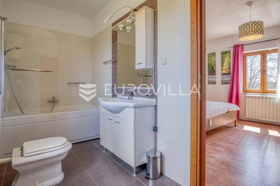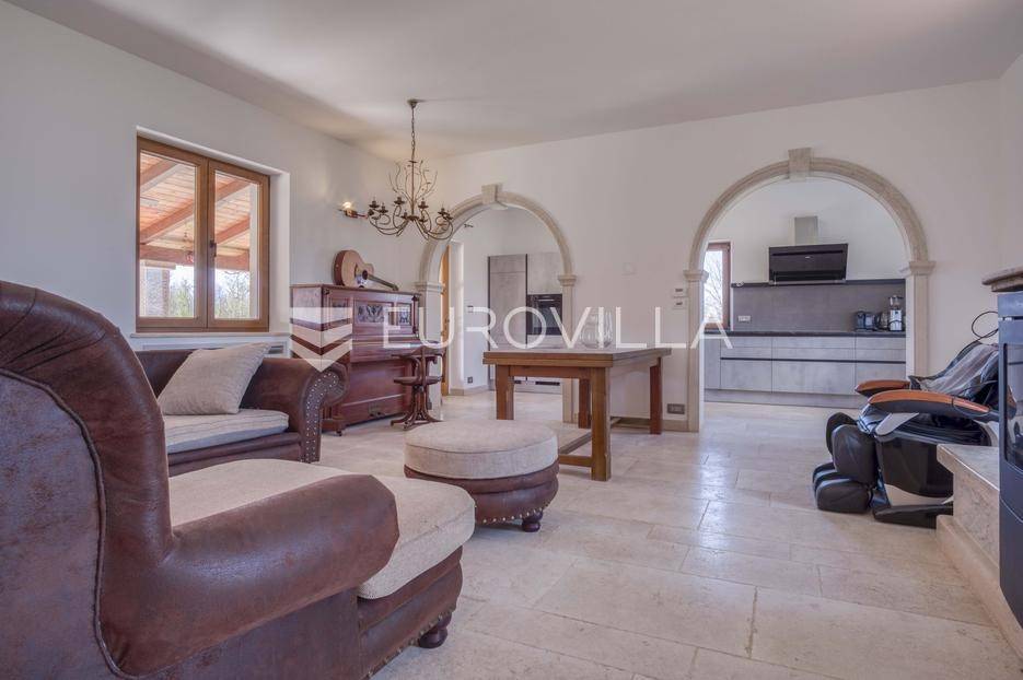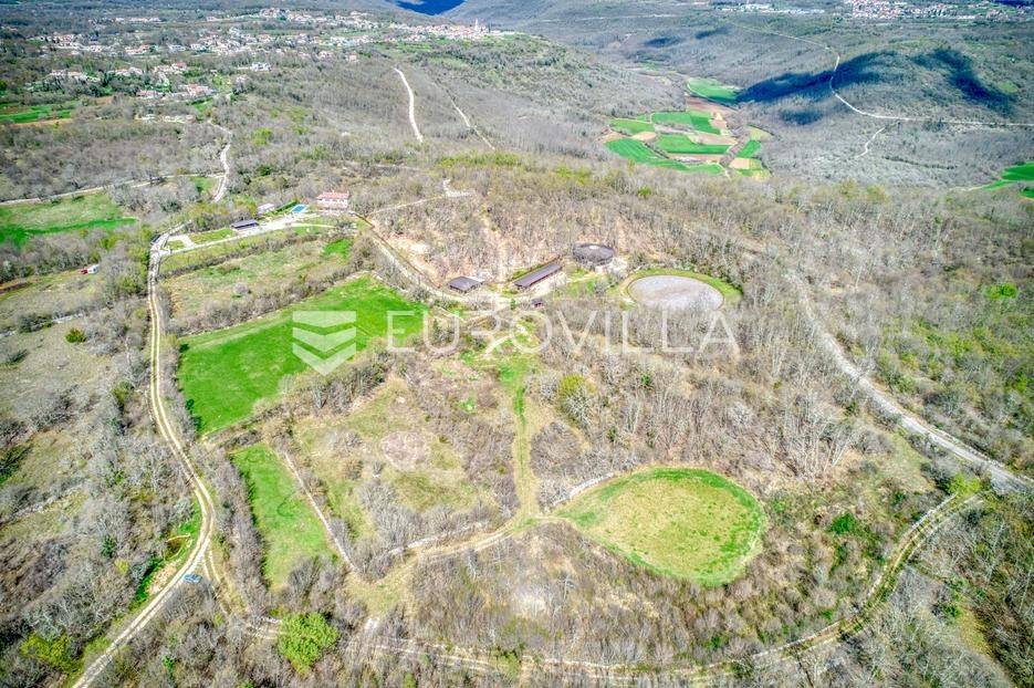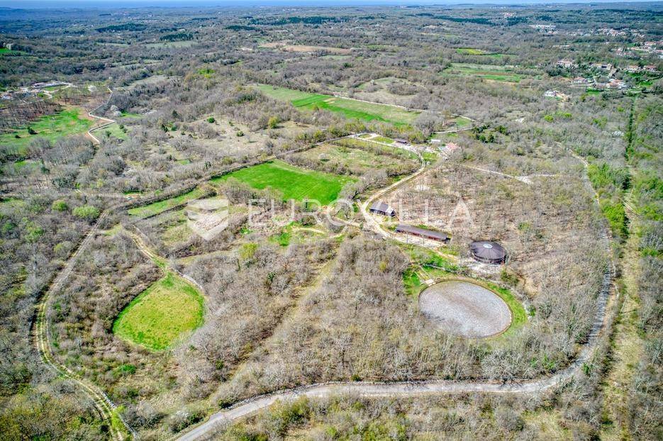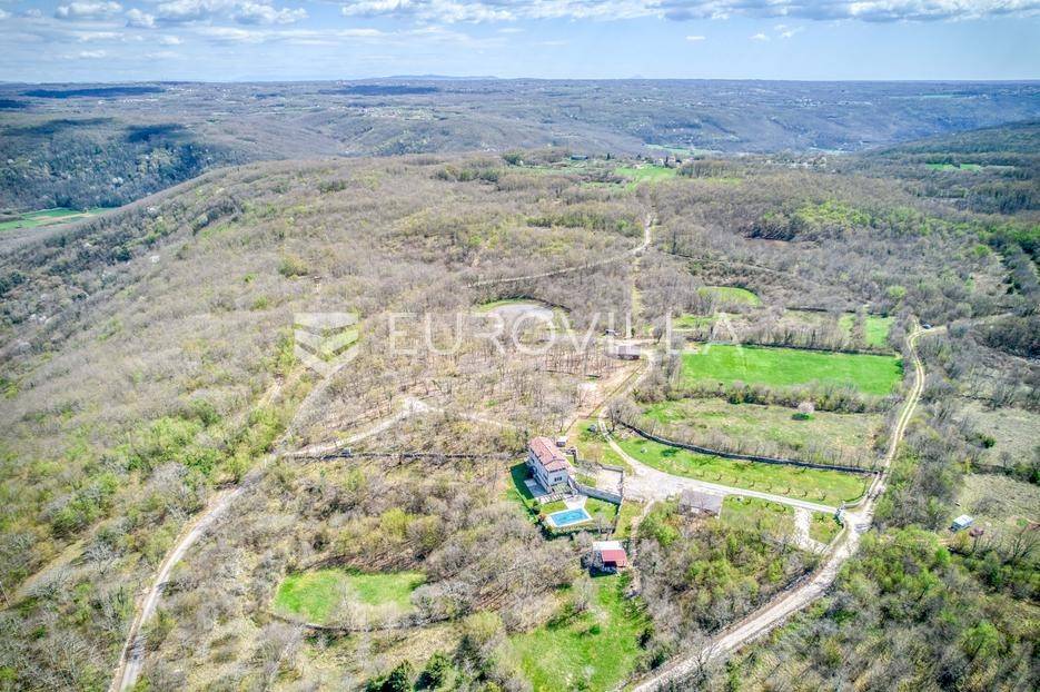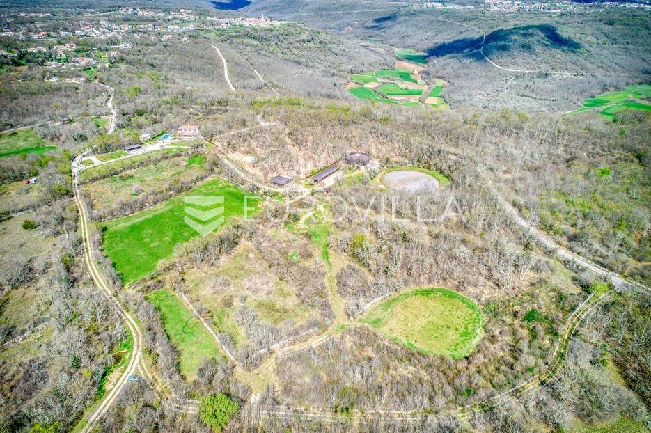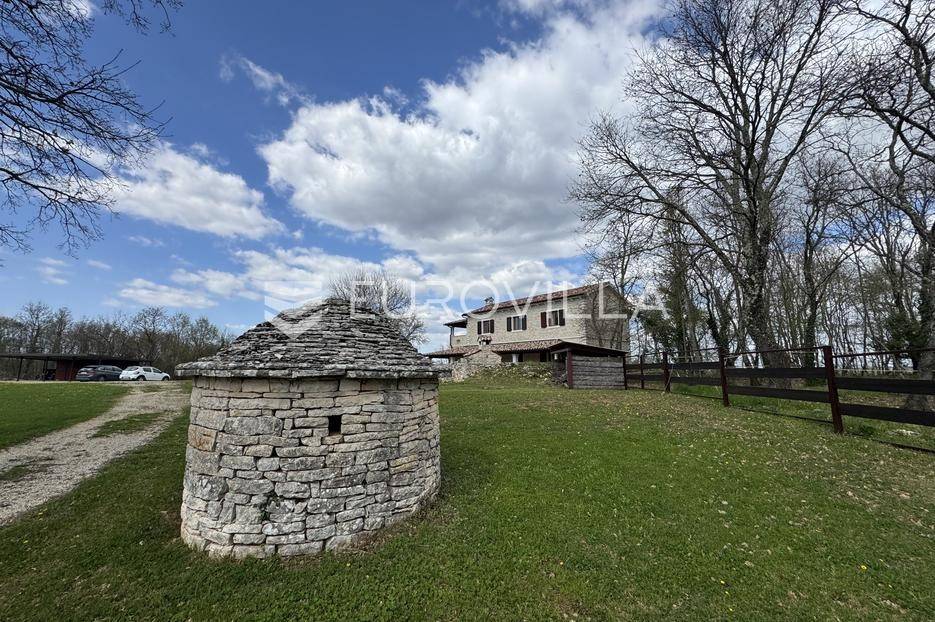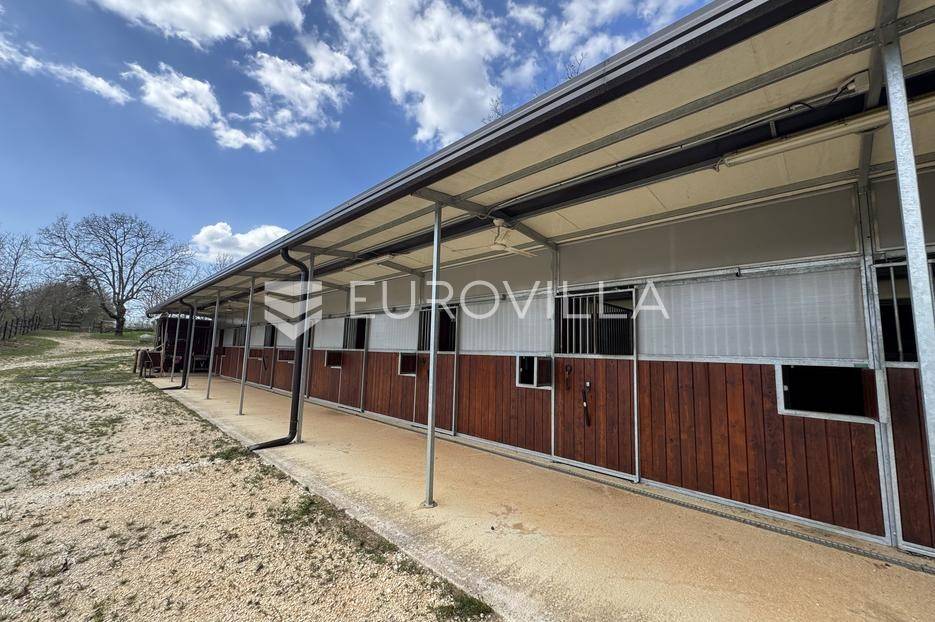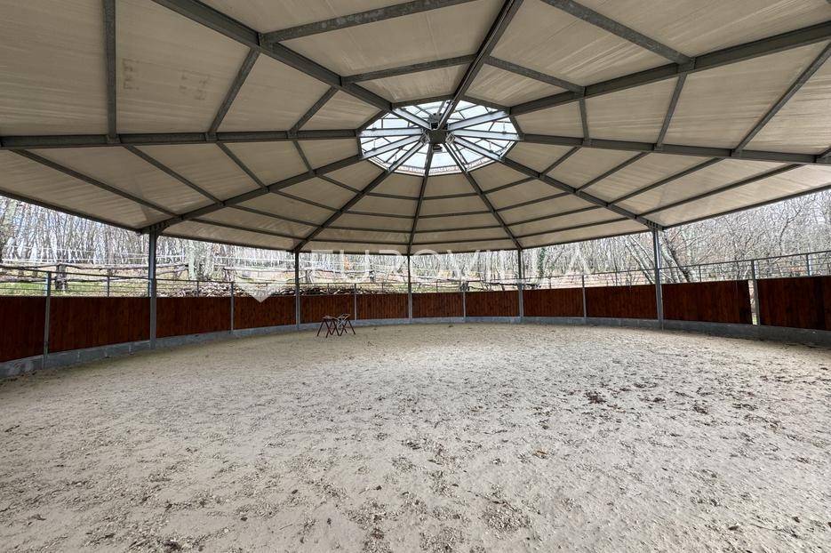 Istra, Kringa, predivno imanje koje se prostire na više od 4 hektara s kućom i bazenom te objektima za konjički turizam.Imanje se prostire na 41342m2 a sastoji se od livada, šume, objekata za konjički turizam te kuće od 250m2 na dvije etaže s bazenom:kuća površine 250m2 na dvije etaže koja se sastoji od dnevnog boravka i kuhinje, gostinjskog toaleta, 4 spavaće sobe svaka s vlastitom kupaonom, natkrivenim balkonom na katu, natkrivenoj terasi ispred kuće s roštiljem, podruma te bazena.štala za konje sa 7 boksevaštala za ponijenatkriveni objekt pogodan za odlaganje stvarimanjež za konje - natkrivena i otkrivena ograđena jahalištaograđena šuma i pašnjaciZa više informacija stojimo vam na raspolaganju... Više na eurovilla.hr, ID: 122037