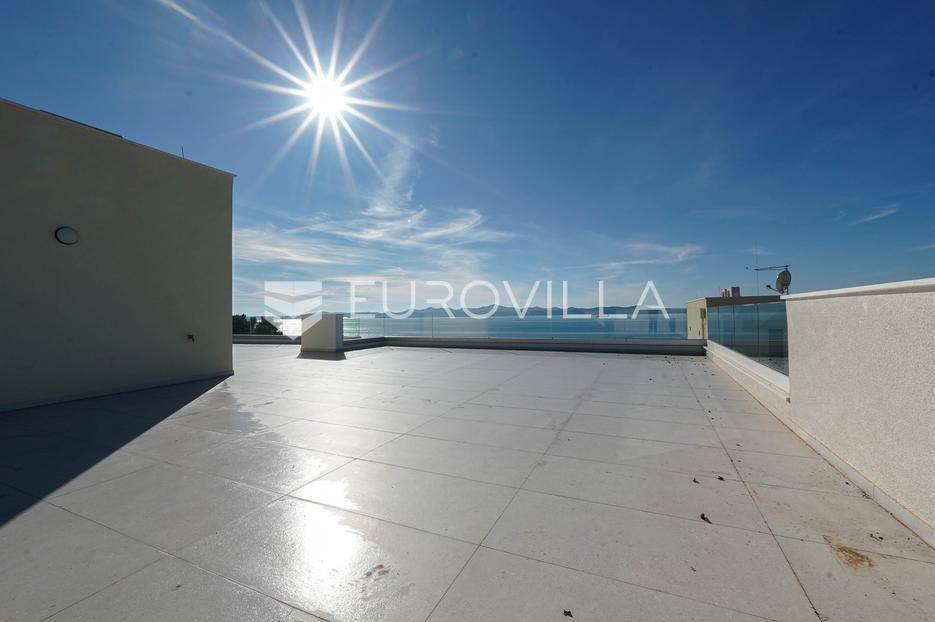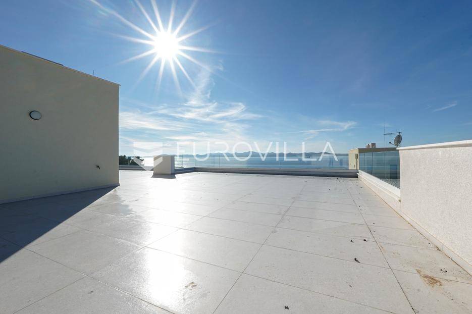 Zadar, Kožino, luksuzan trosobni penthouse novogradnji, površine 207,84 m2.Stan S4 nalazi se na 2. katu zgrade, a sastoji se od ulaznog prostora, tri spavaće sobe, dvije kupaonice, kuhinje, blagovaonice i dnevnog boravka, gostinjskog wc-a, vešeraja, dvije natkrivene terase površine 13,05 m2, 12,90) , lođe (18m2)Stanu pripada krovna terasa na kojoj se nalazi jacuzzi i pruža pogled na more, ostava te dva parkirna mjesta.U izgradnji korišteni vrhunski materijali i oprema ( dizalica toplina za grijanje i hlađenje, ALU stolarija, troslojno staklo, parket i keramika prve klase, protuprovalna vrata, klimatizirano…)Nalazi se na 250 metara udaljenosti od mora i plaže.Kožino je naselje u sastavu grada Zadra, te je dobro prometno povezano s cijelim područjem.Poznato je po šljunčanim i pješčanim plažama koje su okružene mediteranskim vegetacijom.Ova nekretnina nalazi se na izvrsnoj lokaciji te je radi položaja idealna za sve koji žele živjeti u ovom lijepom mjestu pokraj mora, ali i za sve one koji se žele baviti turizmom.Više informacija na upit.... Više na eurovilla.hr, ID: 183058
