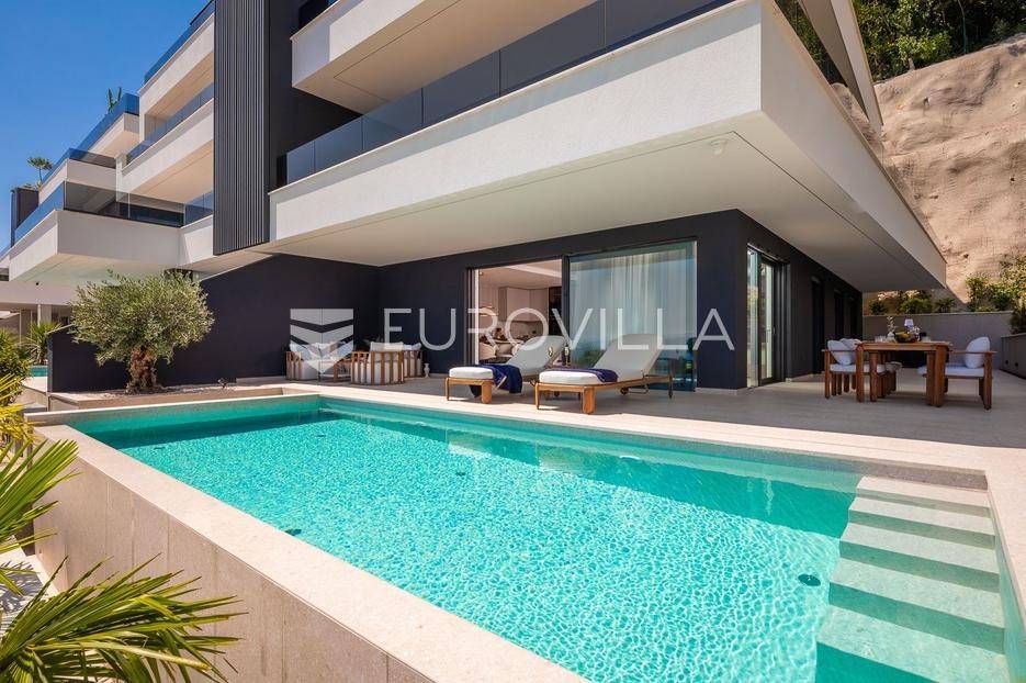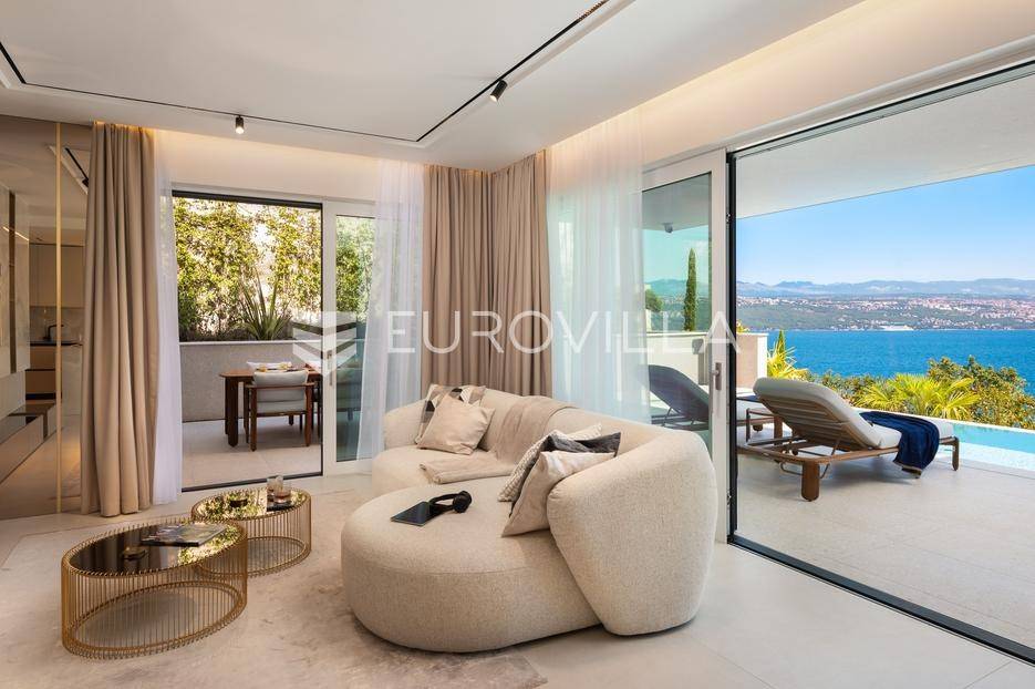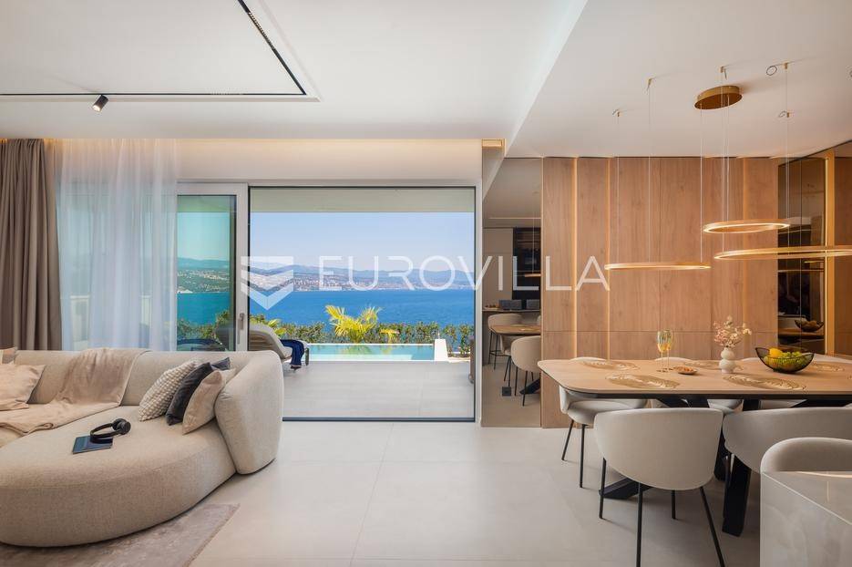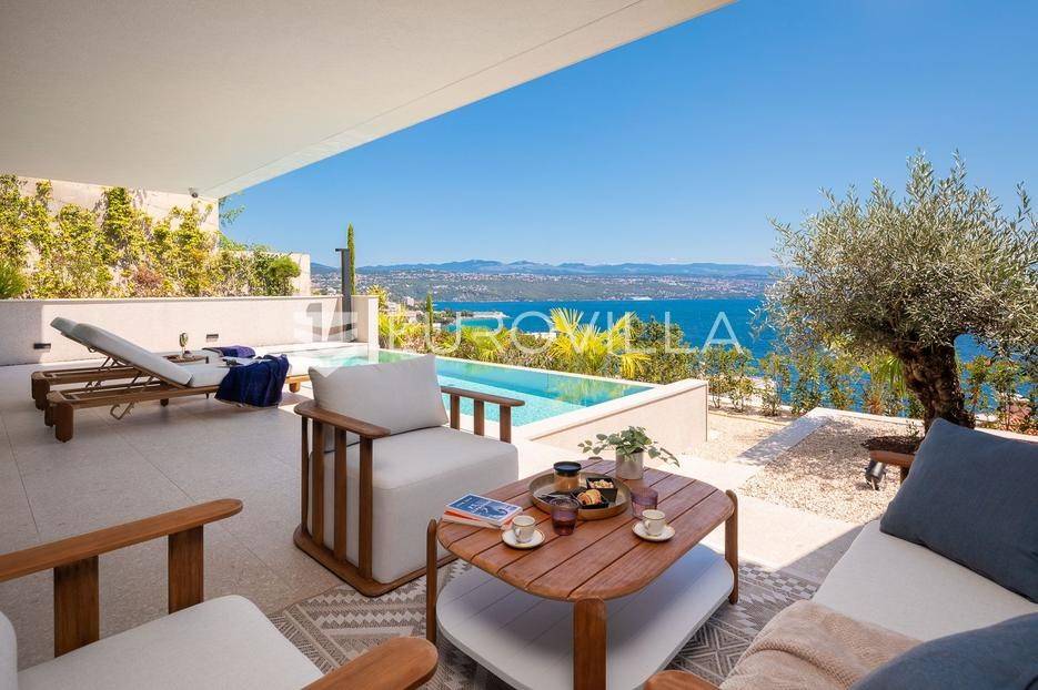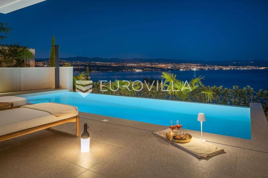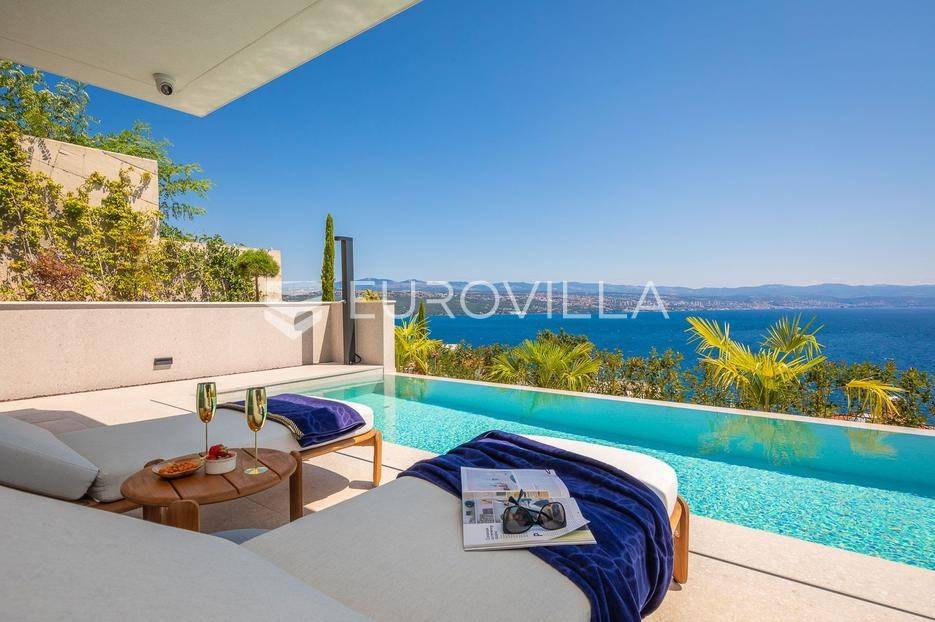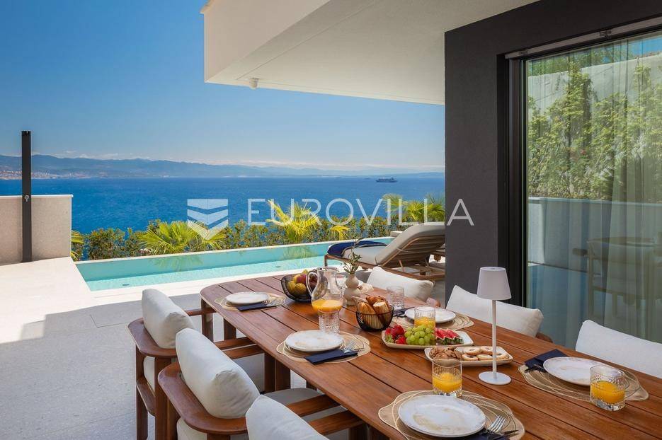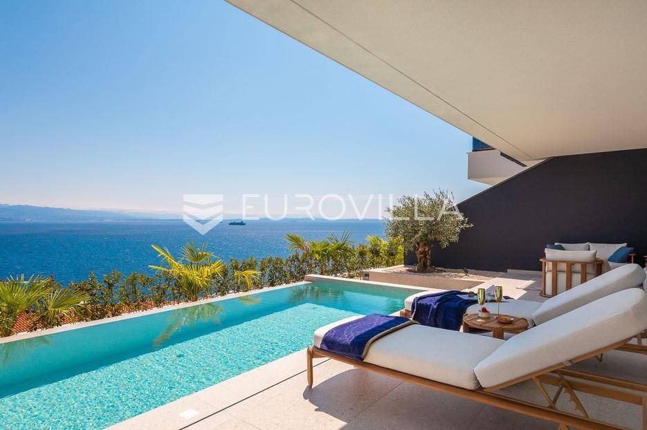 Četverosoban stan s pogledom na more i bazenom u Opatiji 220,92 m2 predstavlja luksuznu nekretninu koja je idealna za one koji žele uživati u prekrasnom mediteranskom ambijentu.Ovaj luksuzan stan sastoji se od tri spavaće sobe, dvije kupaonice, ostave, open space kuhinje s blagovaonicom i dnevnim boravkom koji izlaze na prostranu terasu i vrtu sklopu kojeg se nalazi privatni bazen.Stanu također pripadaju dva parkirna garažna mjesta, spremište i strojarnica bazena sveukupne površine od 264,52 m2.Stan se nalazi u novogradnji, te je opremljen najsuvremenijom opremom i visokokvalitetnim materijalima. Prostrane tri sobe omogućuju udoban smještaj za obitelj ili grupu prijatelja. Svaka soba je pažljivo uređena s modernim namještajem i prozorima koji omogućuju obilje prirodne svjetlosti.Jedna od najimpresivnijih karakteristika ovog stana je pogled na more. Iz dnevnog boravka, terase ili prozora možete uživati u panoramskom pogledu na Jadransko more, zalaske sunca i brodove koji prolaze. Ovo je savršeno mjesto za opuštanje i uživanje u prekrasnom krajoliku.Pristup privatnom bazenu je idealan za osvježenje i opuštanje u vrućim ljetnim mjesecima. Bazen pruža dodatnu vrijednost i luksuz ovom stanu, omogućavajući vam da se osvježite i opustite bez potrebe da putujete do plaže. Bazen ima mogućnost grijanja vode, te se ga možete koristiti kroz cijelu godinu.Opatija je poznata kao jedna od najprestižnijih destinacija na Jadranu, a ovakav stan nudi savršen spoj elegancije, udobnosti i spektakularnog pogleda na more.Opatija je također poznata po svojoj bogatoj kulturnoj ponudi, restoranima s izvrsnom hranom i prekrasnim šetalištima uz more. S ovakvim stanom imate priliku uživati u svim tim blagodatima, a istovremeno imate privatnost i udobnost vlastitog stana.Ovaj četverosoban stan s pogledom na more i bazenom u Opatiji predstavlja idealnu nekretninu za one koji traže luksuzni životni stil na obali Jadranskog mora.Ostale informacije na upit.... Više na eurovilla.hr, ID: 185695