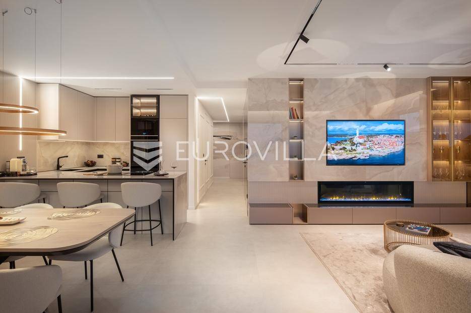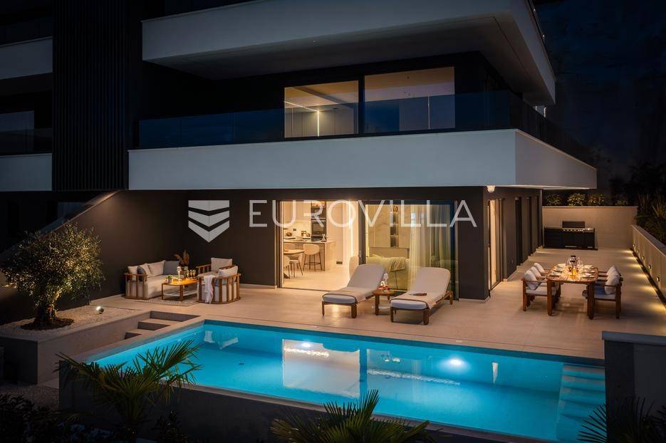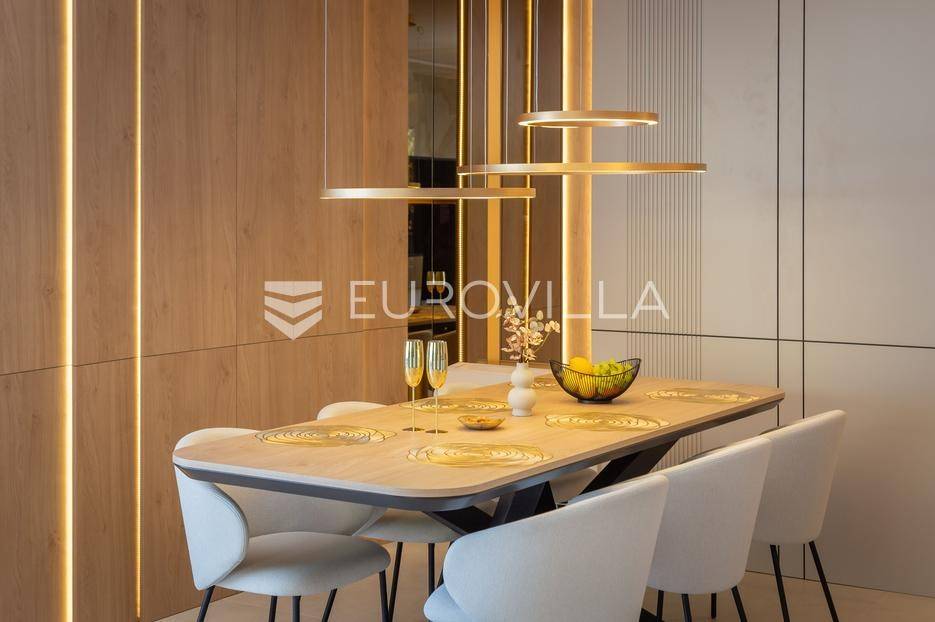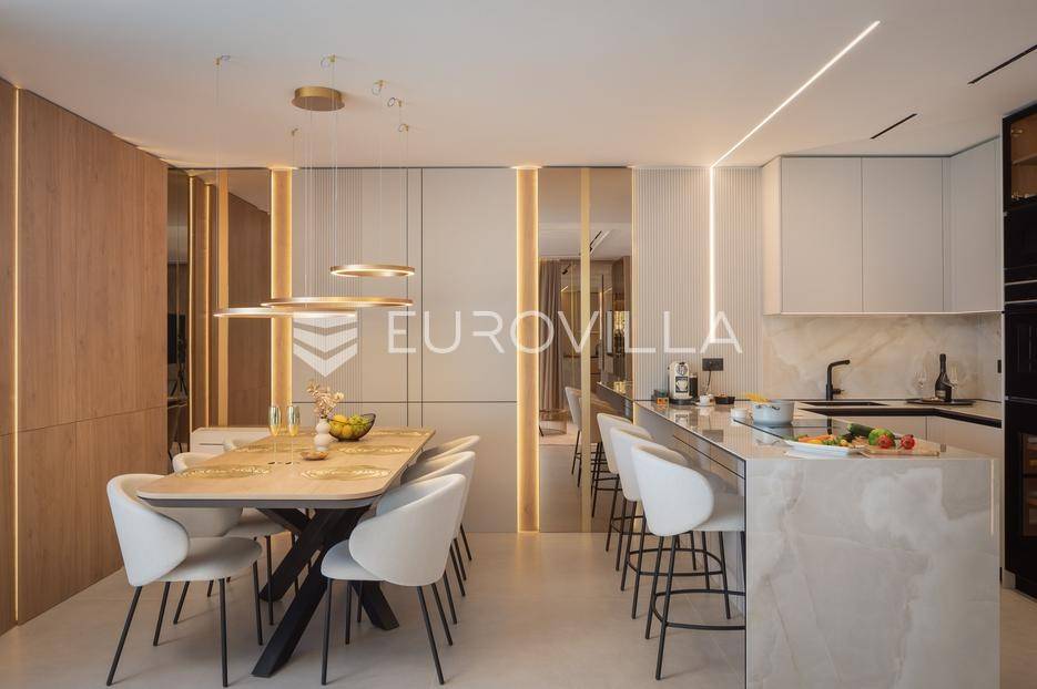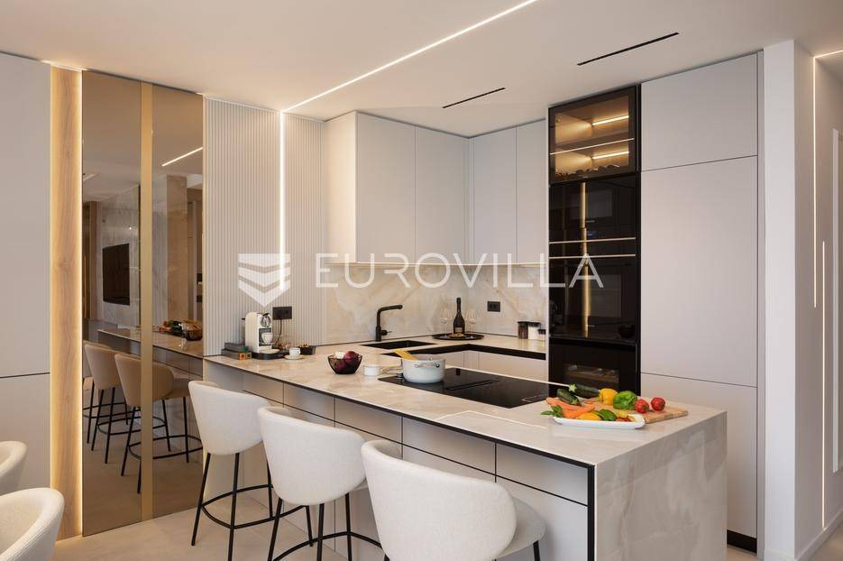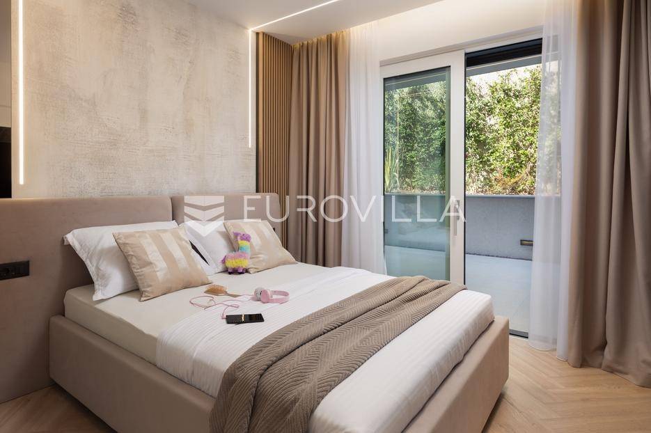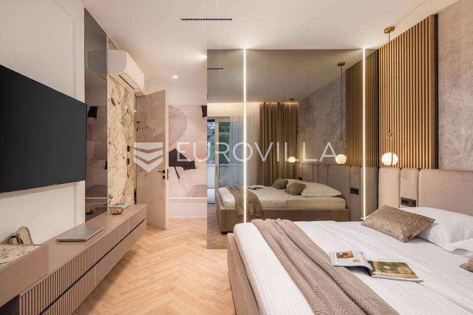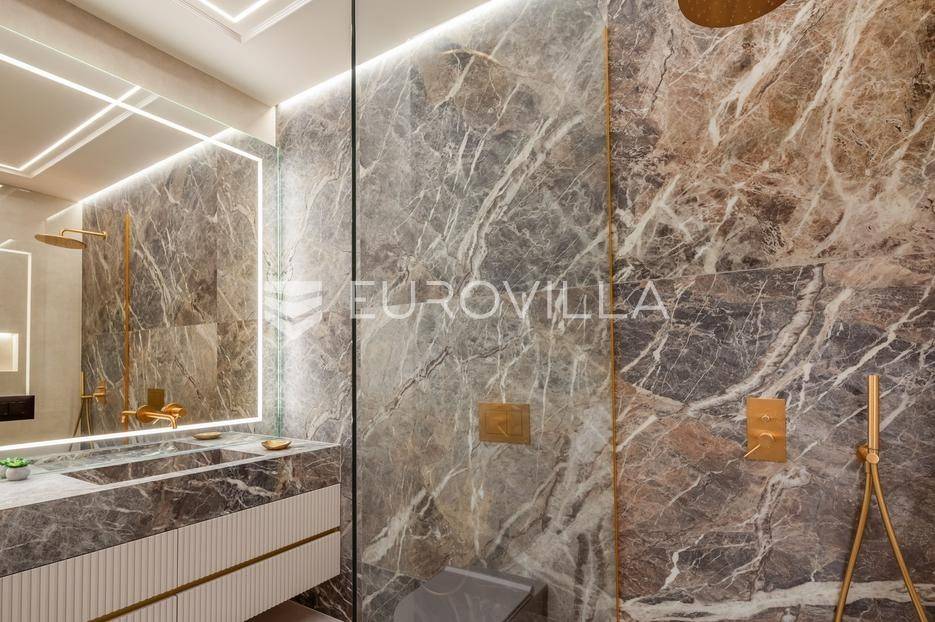 Četverosoban stan s pogledom na more i bazenom u Opatiji 220,92 m2 predstavlja luksuznu nekretninu koja je idealna za one koji žele uživati u prekrasnom mediteranskom ambijentu.Ovaj luksuzan stan sastoji se od tri spavaće sobe, dvije kupaonice, ostave, open space kuhinje s blagovaonicom i dnevnim boravkom koji izlaze na prostranu terasu i vrtu sklopu kojeg se nalazi privatni bazen.Stanu također pripadaju dva parkirna garažna mjesta, spremište i strojarnica bazena sveukupne površine od 264,52 m2.Stan se nalazi u novogradnji, te je opremljen najsuvremenijom opremom i visokokvalitetnim materijalima. Prostrane tri sobe omogućuju udoban smještaj za obitelj ili grupu prijatelja. Svaka soba je pažljivo uređena s modernim namještajem i prozorima koji omogućuju obilje prirodne svjetlosti.Jedna od najimpresivnijih karakteristika ovog stana je pogled na more. Iz dnevnog boravka, terase ili prozora možete uživati u panoramskom pogledu na Jadransko more, zalaske sunca i brodove koji prolaze. Ovo je savršeno mjesto za opuštanje i uživanje u prekrasnom krajoliku.Pristup privatnom bazenu je idealan za osvježenje i opuštanje u vrućim ljetnim mjesecima. Bazen pruža dodatnu vrijednost i luksuz ovom stanu, omogućavajući vam da se osvježite i opustite bez potrebe da putujete do plaže. Bazen ima mogućnost grijanja vode, te se ga možete koristiti kroz cijelu godinu.Opatija je poznata kao jedna od najprestižnijih destinacija na Jadranu, a ovakav stan nudi savršen spoj elegancije, udobnosti i spektakularnog pogleda na more.Opatija je također poznata po svojoj bogatoj kulturnoj ponudi, restoranima s izvrsnom hranom i prekrasnim šetalištima uz more. S ovakvim stanom imate priliku uživati u svim tim blagodatima, a istovremeno imate privatnost i udobnost vlastitog stana.Ovaj četverosoban stan s pogledom na more i bazenom u Opatiji predstavlja idealnu nekretninu za one koji traže luksuzni životni stil na obali Jadranskog mora.Ostale informacije na upit.... Više na eurovilla.hr, ID: 185695