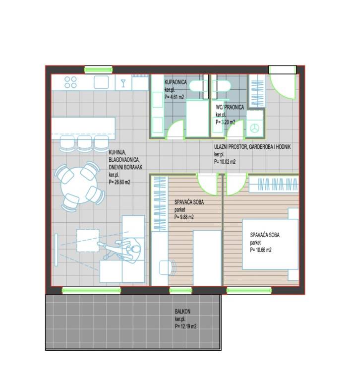 Trogir, na pješačkoj udaljenosti od strogog centra grada , predviđena je izgradnja dvojnog objekta moderne vizure, s funkcionalnim rasporedom stambenih jedinica.Stan B3 - smješten je na etaži visokog prizemlja ( u naravni prvi kat ) , a sastoji se od hodnika, kupaonice, wc-a, dvije spavaće sobe i dnevnog prostora ( kuhinja s blagovaonicom i dnevni boravak ). Pripada mu natkriveni balkon površine 12, 19 m2, kao i jedno vanjsko parkirno mjesto. Površina zatvorenog stambenog dijela iznosi 65 m2, dok je ukupna 73, 55 m2.Početak gradnje je predviđen na jesen 2025. godine.Za sva dodatna pitanja, stojimo vam na raspolaganju.... Više na eurovilla.hr, ID: 236167