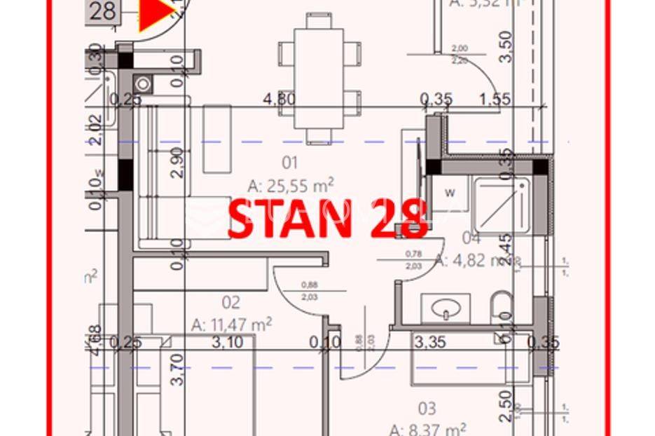 U popularnom Pulskom kvartu Monvidal smjestio se stan na trećem katu kvalitetne novogradnje s ukupnom stambenom površinom od 54,20 m2.Stan se sastoji od ulaznog hodnika, dvije spavaće sobe, kupatila, dnevnog boravka s kuhinjom i blagovaonom po otvorenom principu, loggie i dva parking mjesta.Unutarnje uređenje stanova zadovoljavat će više kriterije kvalitete gradnje kao i visoki energetski certifikat: termo fasada, etažni sistem grijanja i hlađenja s inverter klimama, vrhunska talijanska keramika i laminati prve klase, ulazna protuprovalna vrata, stambena stolarija izrađena od visoko kvalitetnih njemačkih PVC profila, ostakljena dvostrukim IZO staklom punjenim argonom, električna podna grijanja u kupatilima i dr.U okolišu zgrada planirane su zelene površine i sadnja stablašca do 2 m visine, čime će se dodatno atraktivizirati urbani prostor okolo zgrade u skladu s prirodom.Za više informacija stojimo Vam na raspolaganju.... Više na eurovilla.hr, ID: 275087