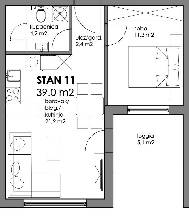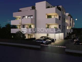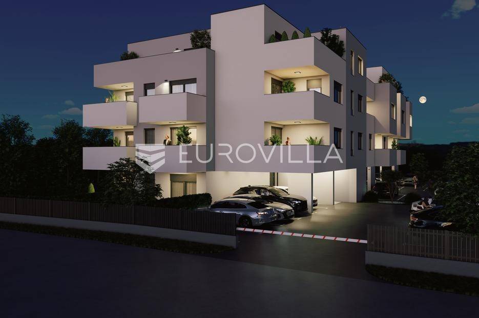 Dvosoban stan zatvorene površine 39 m2 smješten na 2. Katu.Sastoji se od ulaza/garderobe, kupaonice, spavaće sobe, dnevnog boravka, kuhinje s blagovaonicom te lođe.Uz stan je obavezna kupnja spremišta te parkirnog mjesta.-----Projekt suvremene stambene novogradnje s liftom izvedene u armirano-betonskoj konstrukciji s monolitnim međukatnim pločama. Pregradni zidovi izrađeni su po Knauf sustavu s ispunom od mineralne vune, a zidovi između stanova dodatno su toplinski i zvučno izolirani. Objekt je projektiran s ravnim, neprohodnim krovom u višeslojnoj izvedbi te ETICS fasadom s mineralnom vunom i stiroporom debljine 15 cm i završnim slojem silikatne žbuke.Vanjska PVC stolarija opremljena je toplinski izoliranim roletama na elektromotorni pogon, kliznim stijenama i komarnicima na svim otvorima. Unutarnja stolarija izrađena je od drva, sa zvučno izoliranim vratima, dok su ulazna vrata protuprovalna, protupožarna i zvučno izolirana.Zajednički dijelovi zgrade uključuju ulaz i stubišta obložena granitom, videonadzor, te posebno brojilo plina, vode i struje za svaki stan s mogućnošću daljinskog očitanja. U okolišu su predviđeni asfaltirani i betonski kolni prilazi, hortikulturno uređene zelene površine, dekorativna rasvjeta i odvojeni prostor za spremanje otpada.Stanovi imaju visinu prostorija od od 260 do 270 cm u dnevnim dijelovima i od 250 cm - 260 cm u kupaonicama i hodnicima. Sanitarne prostorije opremljene su kvalitetnim uređajima svjetskih proizvođača poput GROHE i TECE, s fleksibilnom hidroizolacijom, keramikom I. klase te podnim grijanjem. Predviđena je mogućnost odabira između kade ili tuš izvedbe s paravanima od kaljenog stakla. Podovi stanova obloženi su višeslojnim hrastovim parketom, dok su kuhinje, kupaonice i lođe izvedene u keramičkim pločicama.Grijanje i priprema tople vode predviđeni su putem kondenzacijskih plinskih bojlera i podnog grijanja u svim prostorijama, uz termostate u svakoj sobi. Stanovi će biti klimatizirani inverter klima uređajima (multi-split sustav). Ventilacija sanitarnih prostora riješena je niskošumnim ventilatorima, a kuhinje imaju predviđene odsisne sustave.Elektroinstalacije uključuju videoportafon u boji, LED rasvjetu, informatičku mrežu cat 6, utičnice za TV i internet u svakoj sobi te rolete na elektromotorni pogon. Sve kupaonice imaju dodatne priključke i rasvjetu prilagođenu modernom standardu.Investitor daje jamstvo na konstrukciju i hidroizolaciju od 10 godina, na ostale radove 2 godine, a na opremu i uređaje prema jamstvu proizvođača. Posebna pažnja posvećena je odabiru materijala i izvedbi, pri čemu su korišteni isključivo kvalitetni i provjereni sustavi, čime je osigurana trajnost i visoki standard stanovanja.... Više na eurovilla.hr, ID: 277827