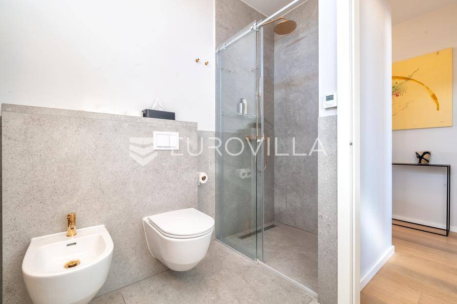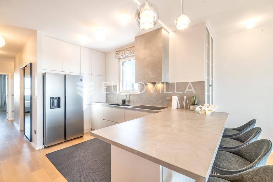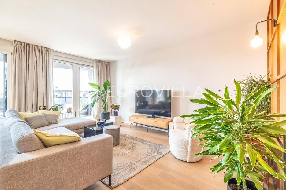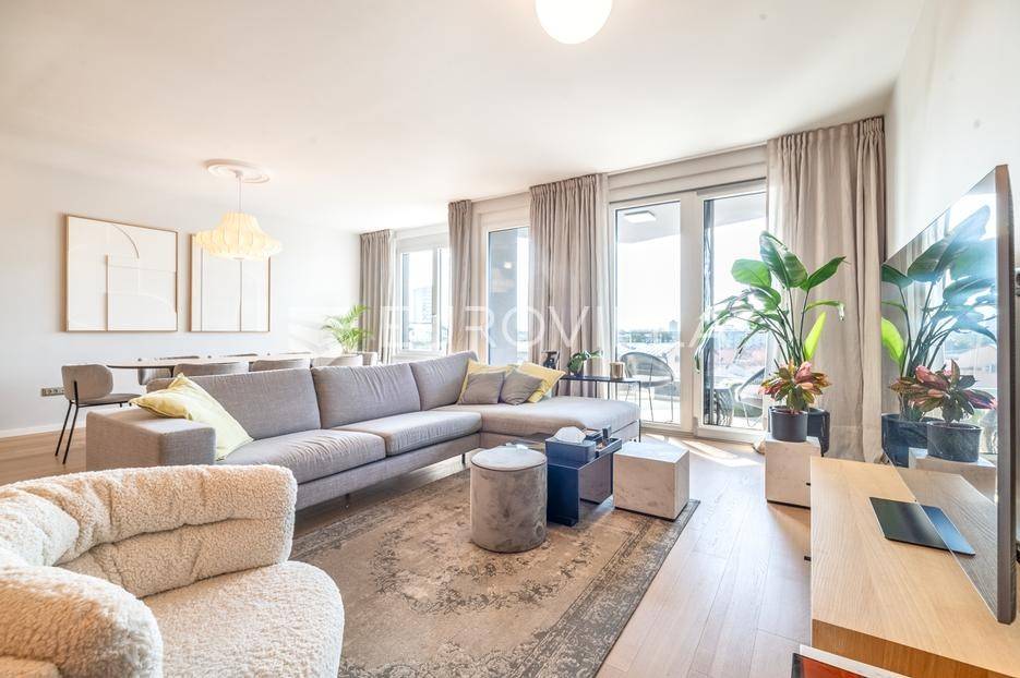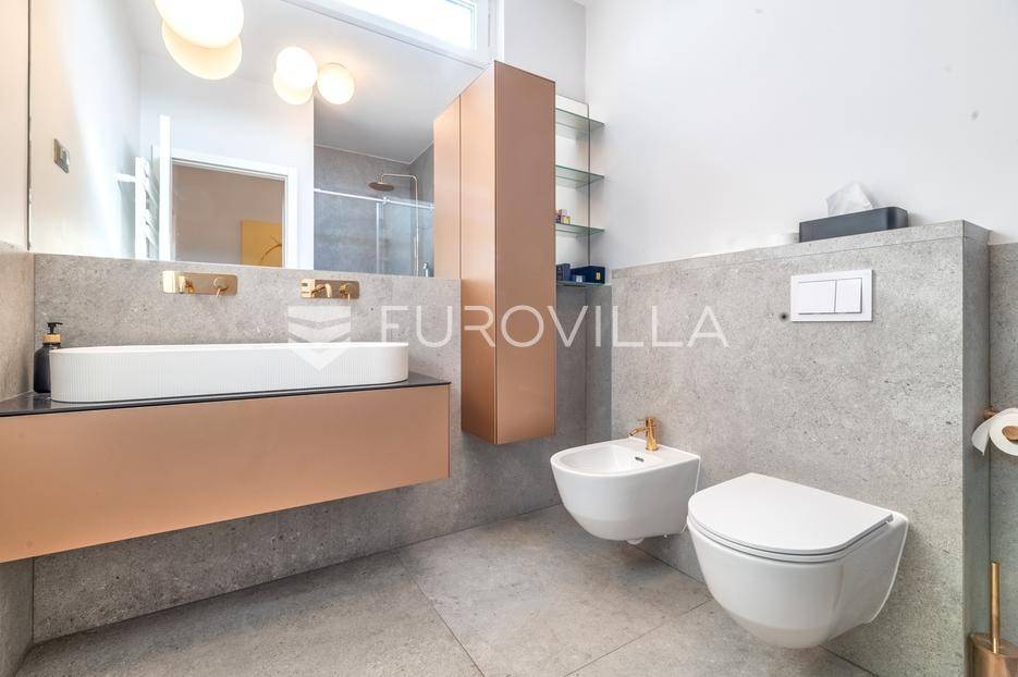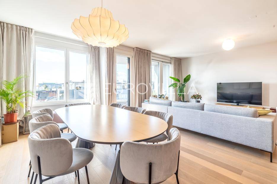 Zagreb, Trešnjevka, Trakošćanska prekrasan trosoban penthouse sa duplom garažom 116m2Na prodaju je vrhunski uređen i dizajnerski namješten stan smješten na uvučenom katu novije stambeno-poslovne zgrade u mirnoj ulici Trakošćanska na Trešnjevci.Sastoji se od:hodnikaprostranog dnevnog boravka s blagovaonicom i kuhinjom otvorenog konceptadvije spavaće sobekupaonice s walk-in tušemdodatnog toaletalođe površine 8,94 m2terase površine 4,05 m2u originalnom tlocrtu je stan bio četverosoban te se po potrebi može dobiti još jedna spavaća sobaStanu pripada spremište površine 3,80 m2 u podrumu zgrade te garažno mjesto površine 30,87 m2 za dva automobila.Uređenje i opremaInterijer je u potpunosti izveden po mjeri, pod nadzorom dizajnera interijera, s naglaskom na estetiku, funkcionalnost i bezvremensku eleganciju.Podovi su izrađeni od najkvalitetnijeg hrasta, dok je kuhinja izrađena po mjeri i opremljena isključivo Miele aparatima.U prostoru je integriran vinski frižider i bar, savršeno uklopljen u dizajn dnevnog boravka.Svi ugradbeni elementi, ormari, kupaonski namještaj i detalji izrađeni su po mjeri, s pažljivo odabranim materijalima i vrhunskom završnom obradom.Kupaonice su uređene u minimalističkom tonu s keramikom i armaturama u zlatnim nijansama, dok rasvjeta, teksture i detalji stvaraju osjećaj ekskluzivnog urbanog doma.LokacijaStan se nalazi na izuzetno traženoj lokaciji, u neposrednoj blizini svih bitnih sadržaja - škola, vrtića, trgovina, restorana, tržnice i javnog prijevoza.Ulica je mirna, a zgrada moderna, održavana i sigurna, s liftom i podzemnom garažom.Ključne značajke90,02 m2 stambene površine8,94 m2 lođe + 4,05 m2 teraseDvije spavaće sobeDvije kupaonicePod od najkvalitetnijeg hrastaMiele aparati + vinski frižider i barDizajnerski i po mjeri izrađen namještajSpremište 3,80 m2Garažno mjesto za dva automobila (30,87 m2)Novija zgrada s liftomMirna i atraktivna lokacijaOvaj stan idealan je izbor za one koji traže elegantan, potpuno opremljen dom spreman za useljenje - spoj luksuza, udobnosti i vrhunskog dizajna u središtu Zagreba.Ostale informacije na upit.... Više na eurovilla.hr, ID: 279402