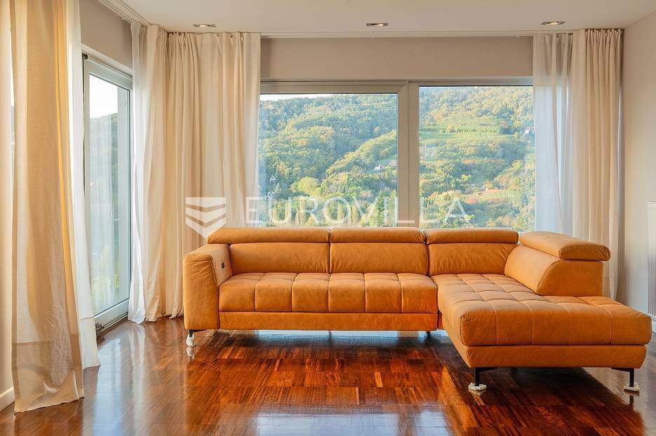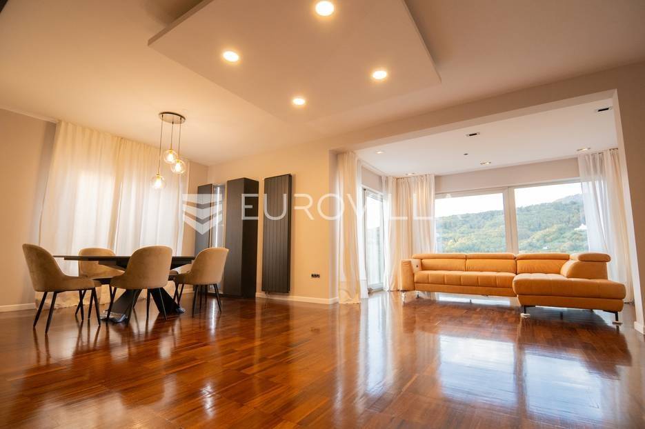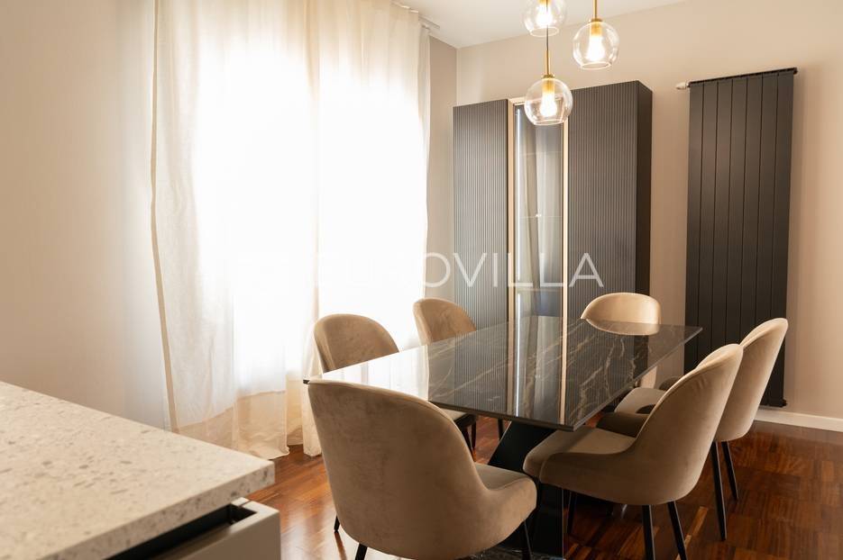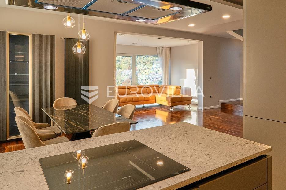 Luksuzan moderno uređen trosoban stan 120 m2. Ova stambena jedinica izvedena je po konceptu kuće u nizu s vlastitim ulazom, pružajući potpunu privatnost i ekskluzivnost.Sastoji se od predulaza koji vodi prema unutrašnjem hodniku, WC-a za goste, prostranog dnevnog boravka s velikim prozorima koji pružaju obilje prirodnog svjetla, moderne kuhinje s otokom i blagovaonicom, stubišta koje vodi na gornji kat, dvije prostrane spavaće sobe te kupaonice. Stanu također pripada prekrasna terasa na kojoj možete uživati u otvorenom prostoru i balkon koji pruža prekrasan pogled na okolicu te parkirno mjesto i garaža.Stan je nedavno potpuno adaptiran i moderno uređen kako bi pružio maksimalnu udobnost i luksuz. Velike staklene stijene čine prostor svijetlim i prozračnim, a kvalitetni materijali i oprema pružaju visoku razinu komfora.Nalazi se u mirnom i prestižnom dijelu Šestina, a blizina prirode i zelenih površina čini ga idealnim izborom za one koji traže kombinaciju luksuza i mira.Za sve dodatne informacije stojim Vam na raspolaganju.... Više na eurovilla.hr, ID: 347054