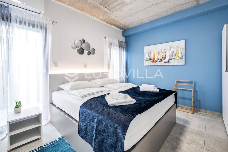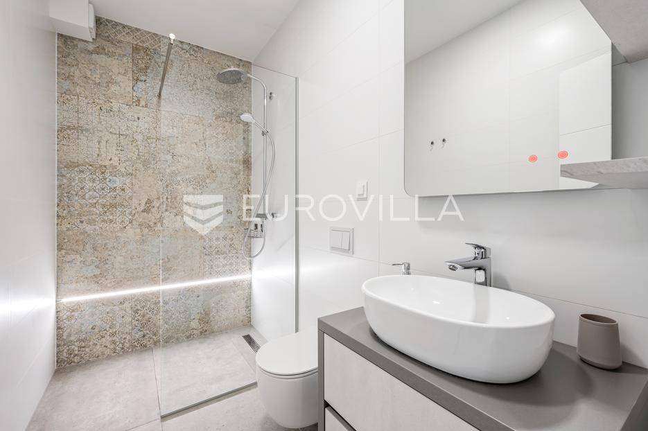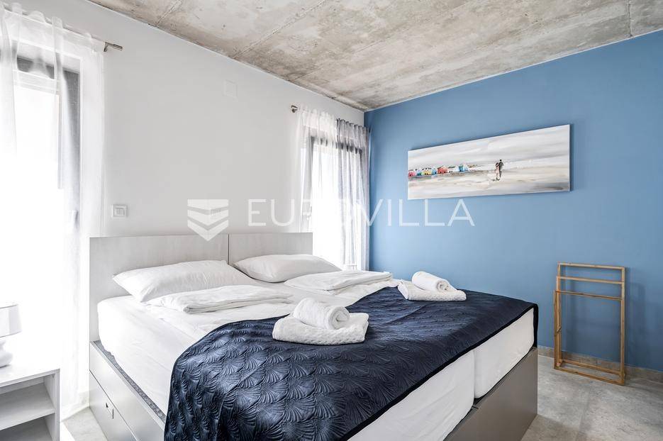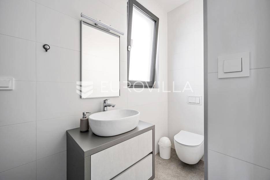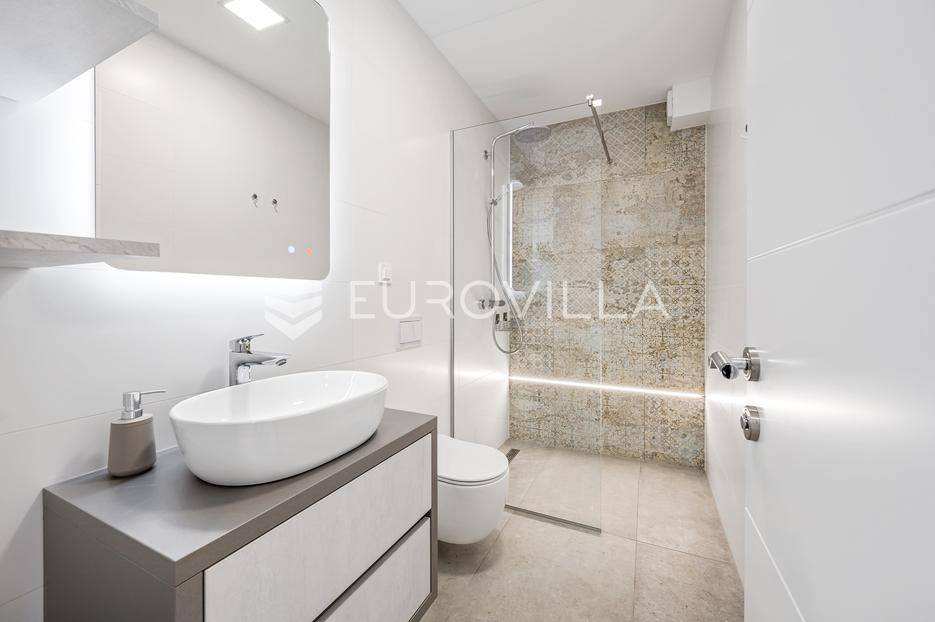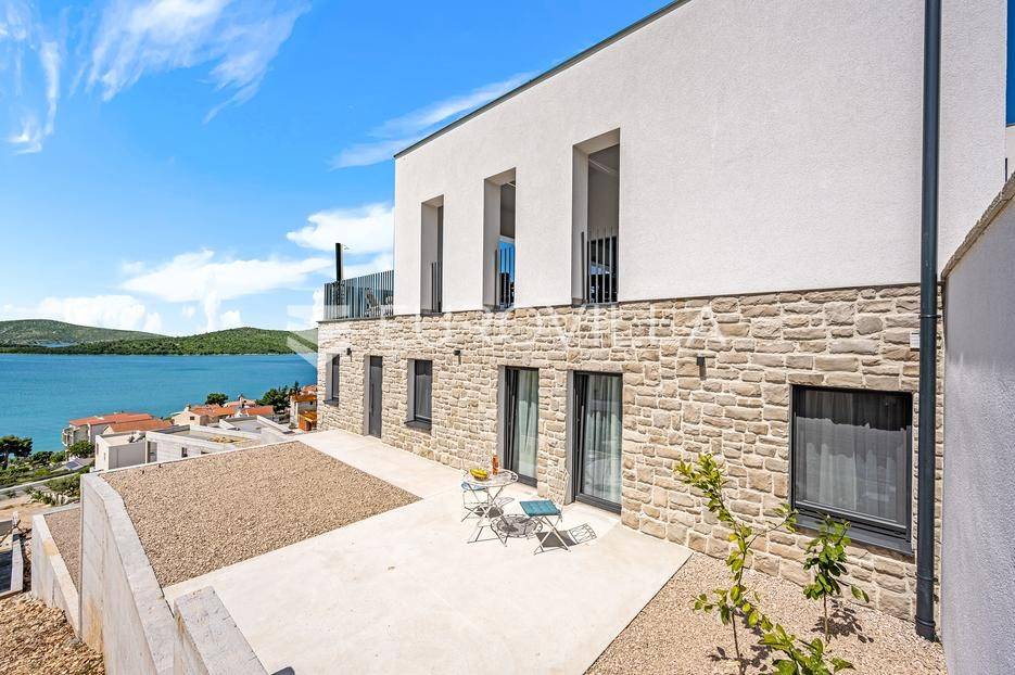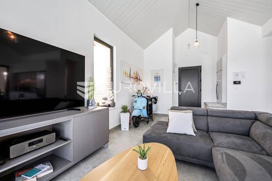 Šibenik, Žaborić, moderna vila, neto korisne površine 208,92 m² izgrađena 2022. Uz villu je grijani bazen na terasi s pogledom na more. Prodaje se potpuno namještena i opremljena idealna za odmor ili nastavak dosadašnjeg uspješnog turističkog najma.Izgrađena na 2 etaže na parceli od 581 m². Sastoji se od prizemlja u kojem su 4 spavaće sobe, svaka sa svojom kupaonicom, boravka s kuhinjom, prostorija predviđenih za wellness i saunu, te kupaonicom. Na prvom katu nalazi se prostrani dnevni boravak s kuhinjom i blagovaonicom, WC, praonica i kotlovnica. Ugrađeno je podno grijanje s dizalicom topline.Pored ville nalazi se grijani bazen, uz koji su dvije terase i pečenjara. Iza ville nalazi se 6 parkirnih mjesta. Villa je opremljena solarnim panelima snage 4,6 kw, te ima punionicu za el. aute.Sve ostale informacije na upit.... Više na eurovilla.hr, ID: 351802