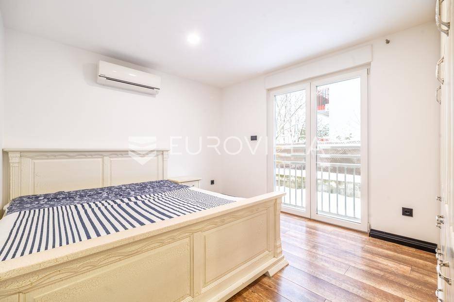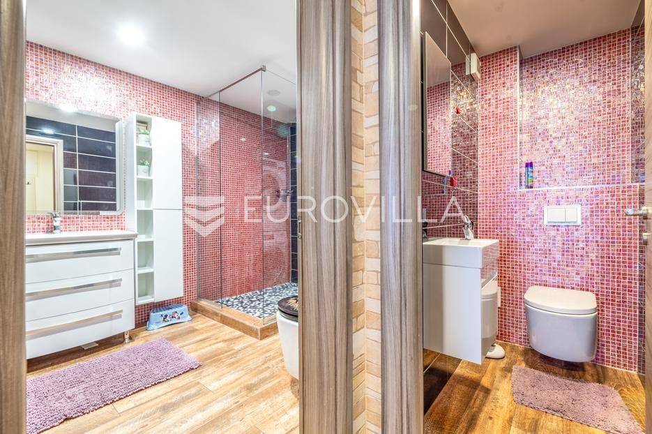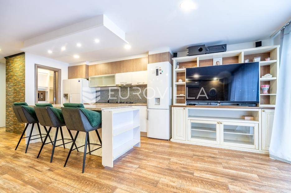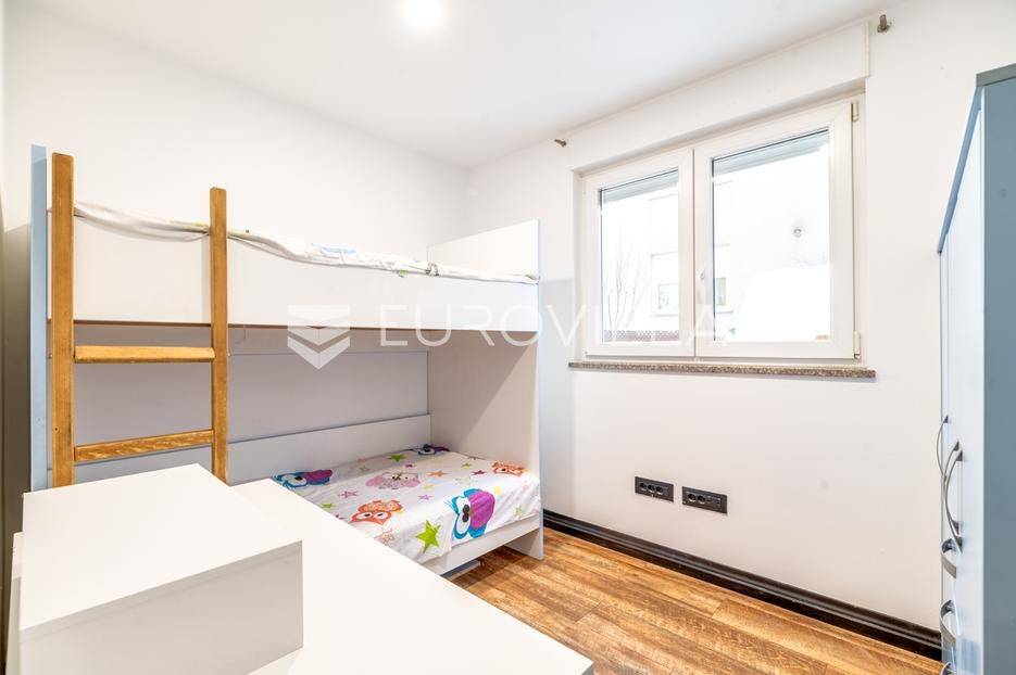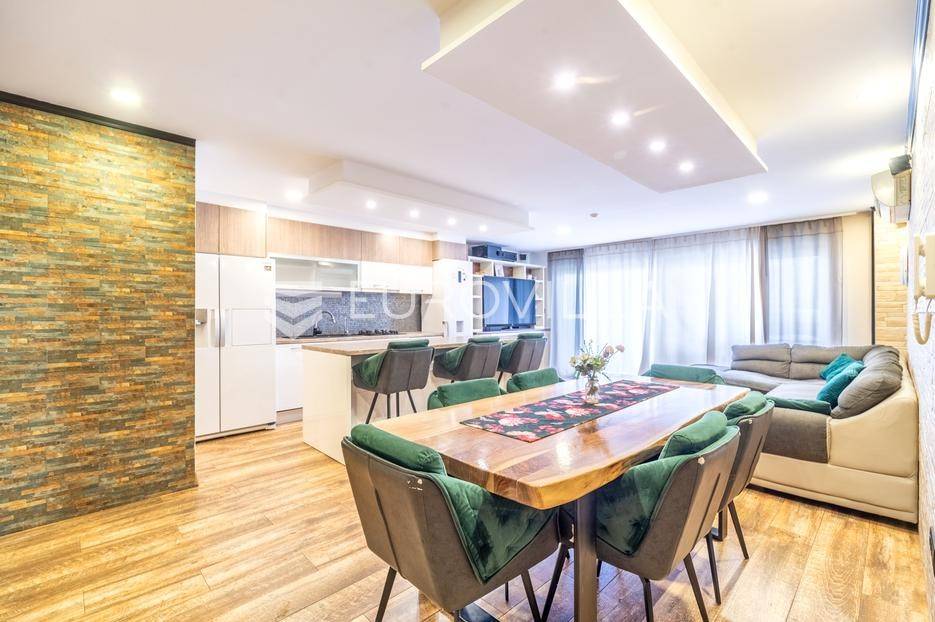 Zagreb, Veliko Polje - četverosobni stan zatvorene površine 87,35 m² u visokom prizemlju kvalitetno građene i uredno održavane zgrade iz 2010. godine.Stan ima pripadajuću terasu površine 15 m², garažno parkirno mjesto površine 12,93 m² te vanjsko parkirno mjesto površine 12 m².Sastoji se od ulaznog hodnika, prostranog dnevnog boravka, kuhinje i blagovaonice otvorenog koncepta s izlazom na montažnu terasu, tri spavaće sobe, kupaonice te dodatnog gostinjskog WC-a.Stan ima izuzetno funkcionalan tlocrt. Grijanje je riješeno putem plinskog podnog grijanja u cijelom stanu, a prostor je dodatno klimatiziran. Nekretnina je u potpunosti adaptirana 2016. godine, kada su zamijenjene sve instalacije. Objekt je opremljen i sustavom video nadzora, što osigurava dodatnu sigurnost.Stan se prodaje potpuno namješten, sa svim uređajima i opremom, te je spreman za useljenje bez dodatnih ulaganja.Nekretnina se nalazi u mirnoj, uvučenoj ulici, okružena isključivo stambenim objektima, a istovremeno u neposrednoj blizini svih sadržaja potrebnih za kvalitetan život - škole, vrtića, trgovina, restorana, barova, sportskih sadržaja i javnog prijevoza. Odlična prometna povezanost dodatno doprinosi atraktivnosti lokacije.Ostale informacije dostupne su na upit.... Više na eurovilla.hr, ID: 361692