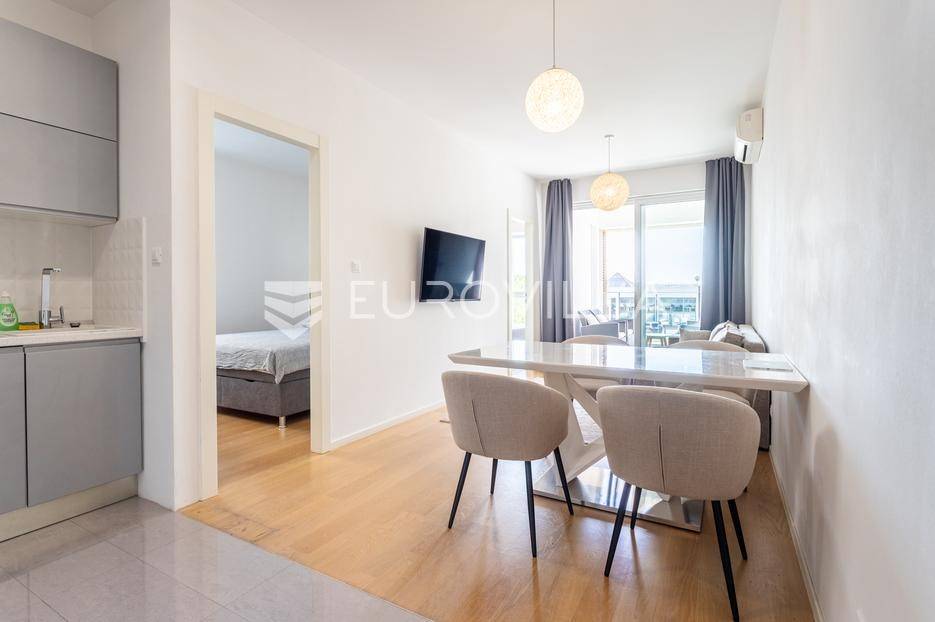 Split, Duilovo, Morska vila, potpuno moderno uređen dvosoban stan, smješten na prvom katu moderne stambene zgrade na mirnoj lokaciji. Sastoji se od ulaznog hodnika, kuhinje, dnevnog boravka s blagovaonicom, kupaonice i dvije sobe, te loggie (6,24m2).Južno orijentiran, ugodan i topao. Površina zatvorenog prostora iznosi 52,41m2.Stan je dostupan za najam od do srpnja 2026. godineRežije nisu uključene u cijenuPripada mu jedno garažno mjesto u zgradi.Ostale informacije na upit.... Više na eurovilla.hr, ID: 443287