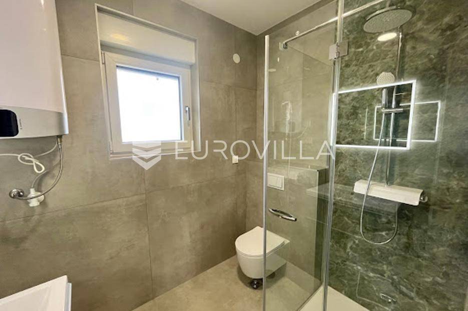 Zadar, Privlaka, luksuzno opremljen dvosoban stan u novogradnji površine 75,83m2, s pogledom na more.Stan se nalazi na prvom katu u modernoj stambenoj zgradi s ukupno 5 jedinica na odličnoj lokaciji udaljen svega 80 m od prve plaže.Sastoji se od dvije spavaće sobe, dvije kupaone, otvorenog tlocrta dnevnog boravka sa kuhinjom iblagovaonom iz kojeg se izlazi na veliku natkrivenu terasu od 10m2.Stan je opremljen je prvoklasnom talijanskom gres keramikom velikog formata, klima uređajima (sve prostorije) s WiFi daljinskim upravljanjem, podnim grijanjem u kupaonama,velikim staklenim stijenama sa roletama na struju i komarnicima, blindiranim ulaznim vratima...Stanu pripadaju i 2 parkirna mjesta.Uredno vlasništvo s uporabnom dozvolom.Iako se nalazi na mirnoj i tihoj lokaciji, u blizini se nalaze i svi potrebni sadržaji za ugodan život poput dućana, tržnice, kafića, restorana.Za sve dodatne informacije stojimo na raspolaganju.... Više na eurovilla.hr, ID: 474931