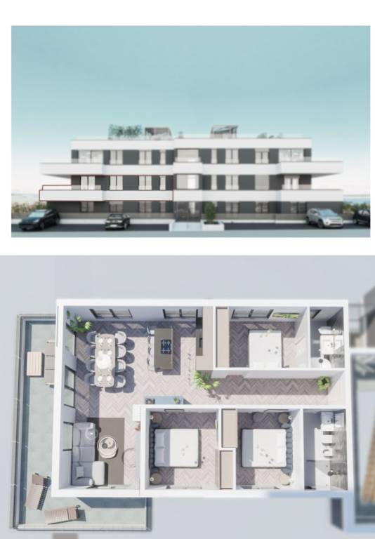 Zadar, Privlaka, Sabunike, predstavljamo vam moderan projekt u novogradnji. Ova nekretnina nudi suvremeni dizajn, prostranost i kvalitetnu gradnju, idealnu za ugodan život ili odmor.Stan S5 nalazi se na prvom katu zgrade, neto korisne površine od 113,95 m2, a uključuje:• Hodnik• Tri spavaće sobe (jedna s vlastitom kupaonicom)• Dodatnu kupaonicu• Kuhinju povezanu s blagovaonicom i dnevnim boravkom• Prostranu natkrivenu terasu s prekrasnim pogledom na moreZgrada je dio novog stambenog projekta i sastoji se od ukupno osam stambenih jedinicaraspoređenih na prizemlje, prvi i drugi kat. Građena je od visokokvalitetnih materijala, s naglaskom na energetsku učinkovitost i dugotrajnost.• Moderna arhitektura - čistih linija i elegantnog izgleda• Kvalitetna termoizolacija - osigurava ugodnu temperaturu tijekom cijele godine• PVC stolarija s troslojnim staklom - bolja zvučna i toplinska izolacija• Klima uređaji u svim prostorijama - za optimalnu kontrolu temperature• Podno grijanje u kupaonicama - dodatna udobnost tijekom hladnijih mjeseci• Sigurnosna ulazna vrata - povećana sigurnost stanara• Uređeno dvorište i parkiralište - svakom stanu pripadaju dva parkirna mjestaZgrada se nalazi na atraktivnoj lokaciji, 500 metara od mora i 2,4 km od centra Privlake, što omogućuje savršenu kombinaciju mira i dostupnosti svih potrebnih sadržaja.Za sve dodatne informacije stojimo na raspolaganju.... Više na eurovilla.hr, ID: 501452